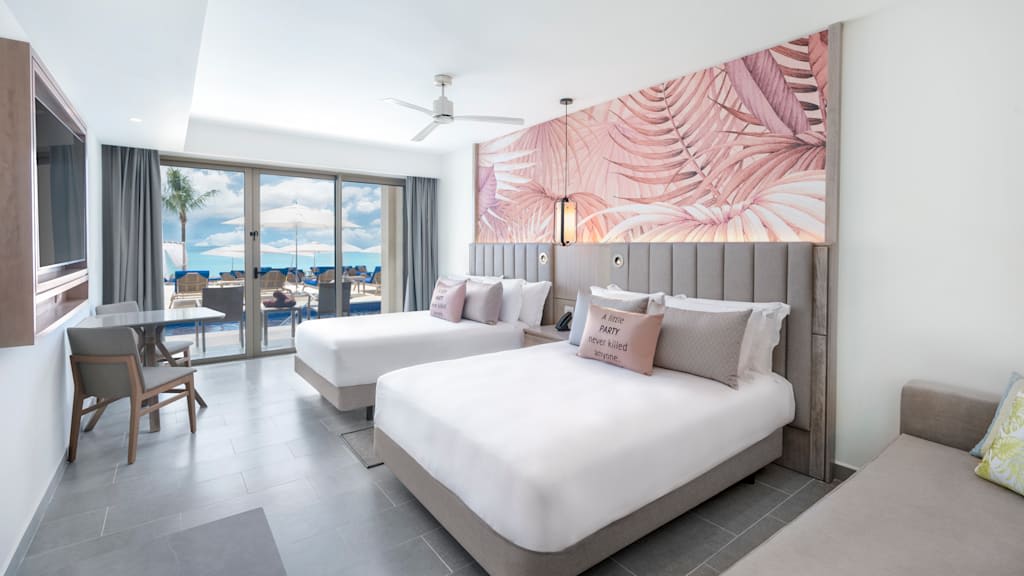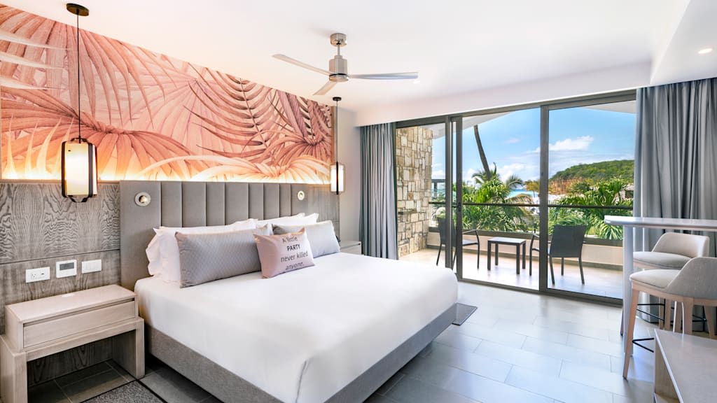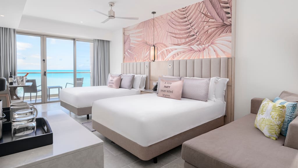 A new adults only haven nestled along the iconic shores of Dickenson Bay, Royalton CHIC Antigua, An Autograph Collection All-Inclusive Resort – Adults Only offers an unrivalled All-In Luxury® experience that caters to singles, couples and groups seeking a remarkable tropical getaway. Just 15 minutes from the airport, relish in the sun-soaked pleasures of private cabanas ($), beachfront pools and pristine white sands while savouring handcrafted cocktails against the backdrop of breathtaking ocean views. You can also experience the thrill of non-motorized water sports, like snorkelling, kayaking and introductory diving lessons. Find tranquillity at The Royal Spa ($) where rejuvenating treatments await, while Royalton Fit keeps you invigorated with exercise classes and wellness activities. Then, indulge your palate with Mediterranean delicacies, Caribbean fusion and international dishes at buffet and à la carte restaurants, including the only overwater restaurant on the island serving “diningtainment” and an eclectic atmosphere that captivates both day and night. Finally, retreat to luxurious accommodations for ultimate comfort, or enhance your stay with Diamond Club™ room categories, granting access to preferred room locations, premium amenities and personalized service. Every moment at this stylish resort is filled with excitement where you can Party Your Way with the CHIC Angels as your hosts.