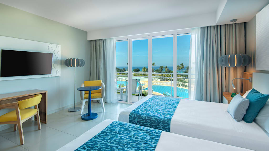 Discover a beachfront getaway at the all inclusive Grand Aston Varadero Beach Resort in Cuba, the perfect destination for families and friends. A refreshing dip or game of volleyball at the pool is a great way to beat the heat when you’re not relaxing on the beach. Spend the afternoon honing your skills with Spanish lessons and dance classes, or catching a game at the on-site sports bar. While younger vacationers enjoy supervised activities at the Teen Club, treat yourself to a massage at the Spa ($) or keep up with your exercise routine at the fitness centre. If you’re up for it, hit the Beauty Salon ($) for some pre-dinner pampering then end your perfect day in paradise with your choice of local and international dining options at the buffet or à la carte restaurants before enjoying a nightcap on your private balcony or terrace, some with an ocean view. Make the most of added amenities in-room and around the resort when you book VIP Club, from early check-in to an exclusive beach bar and more!