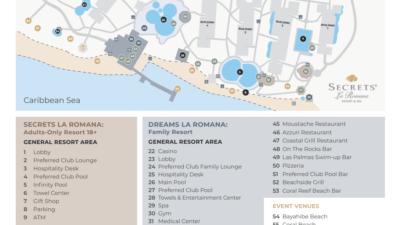 Set on a pristine beach surrounded by lush jungle landscapes, the adults only Secrets La Romana offers a picturesque destination for adults only getaways and vacations with friends. Guests can spend their days relaxing by the resort pool or taking a stroll down the golden sand beach. The resort also offers a sprawling spa with a wide range of treatment options, perfect for guests looking to treat themselves. After a day spent in paradise, vacationers can enjoy delicious international cuisine at one of the resort restaurants before testing their luck at the on-site casino and dancing the night away at the nightclub. Vacationers can retire to spacious accommodations with lavish amenities including 24-hour room service.