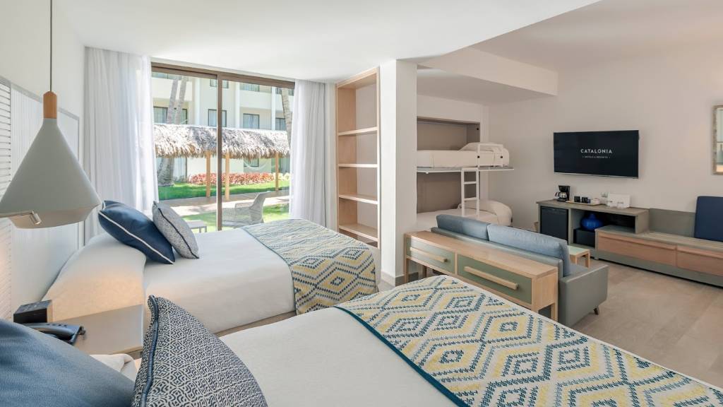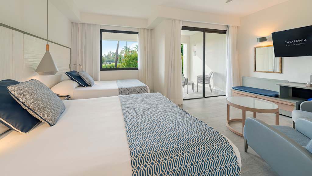 Nestled on the stunning shores of Punta Cana’s famous Bavaro Beach, Catalonia Bavaro Beach and Golf Resort offers vacationers a fun-filled getaway in a beautiful tropical setting. Mini-vacationers can have a blast at the kids pool or make new friends at the supervised kids club while parents lounge by the sprawling pool. There’s plenty of fun for guests of all ages to enjoy like beach volleyball, scuba lessons in the pool, resort-offered water sports like snorkelling and weekly theme nights. Golfers can take advantage of complimentary green fees and tee off at the Catalonia Cabeza de Toro Golf Course located on resort grounds. When it’s time to grab a bite to eat, choose from a variety of delicious cuisine options buffet and à la carte restaurants offering something for all tastes. After exploring all the resort has to offer, retire to spacious suites located in picturesque villas or upgrade to Privileged room categories and enjoy added amenities and services including an exclusive beach area with romantic Bali beds, premium-brand drinks and more.
