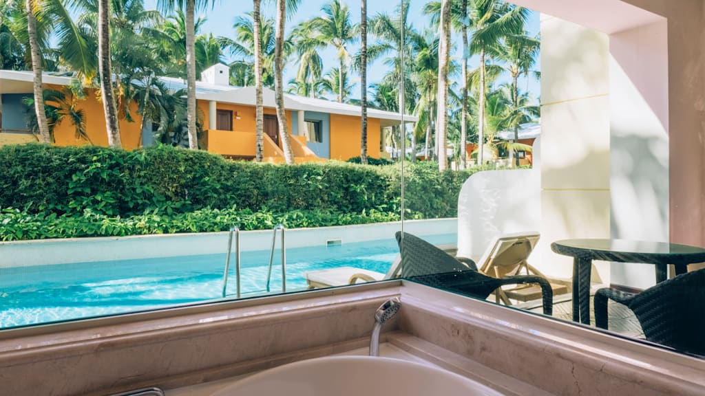 Relax in style at the adults only Joia Bavaro by Iberosta, a luxurious beachfront resort overlooking the turquoise waters of the Caribbean Sea. Perfect for both romantic getaways and sophisticated celebrations, this award-winning property offers world-class service and top-notch amenities. Spend relaxing days by the sprawling pool complex or head down to the beach to stroll along the shore and try out resort-offered water sports like snorkelling and catamaran rides. Keep up with your fitness regime at the oceanview gym, take a yoga or Pilates class or head to the nearby Iberostar Bavaro Golf Club designed by PB Dye for a round of golf on the greens ($). At the end of the day, indulge in gourmet cuisine at a wide variety of dining venues before retiring to spacious suites with world-class butler service, mini-bar restocked daily and 24-hour room service for late-night snacks or breakfasts in bed.