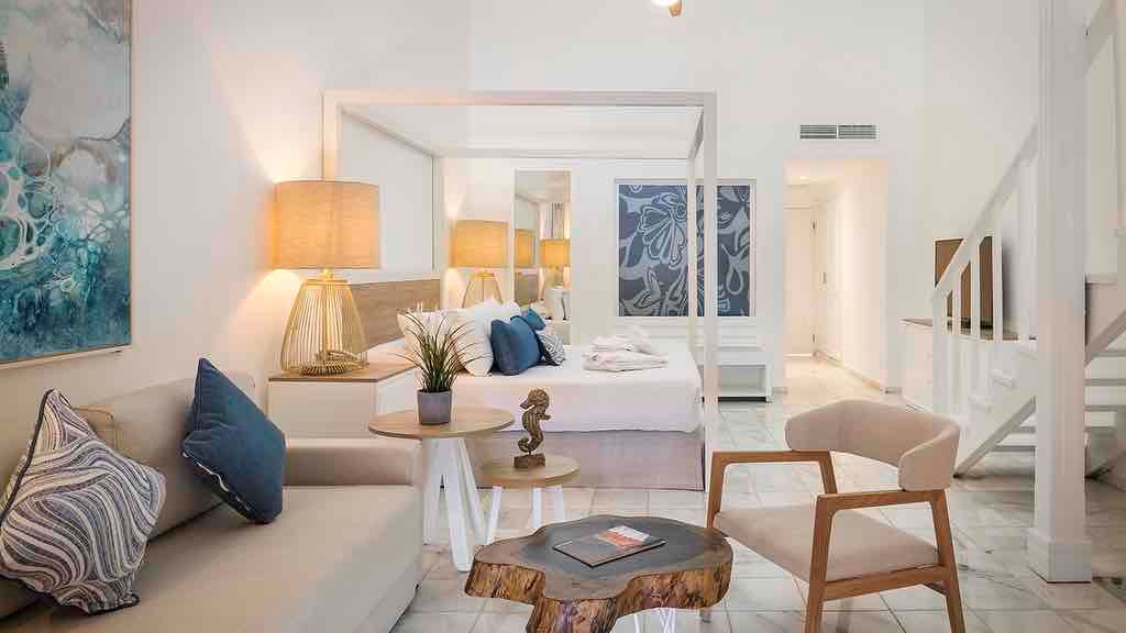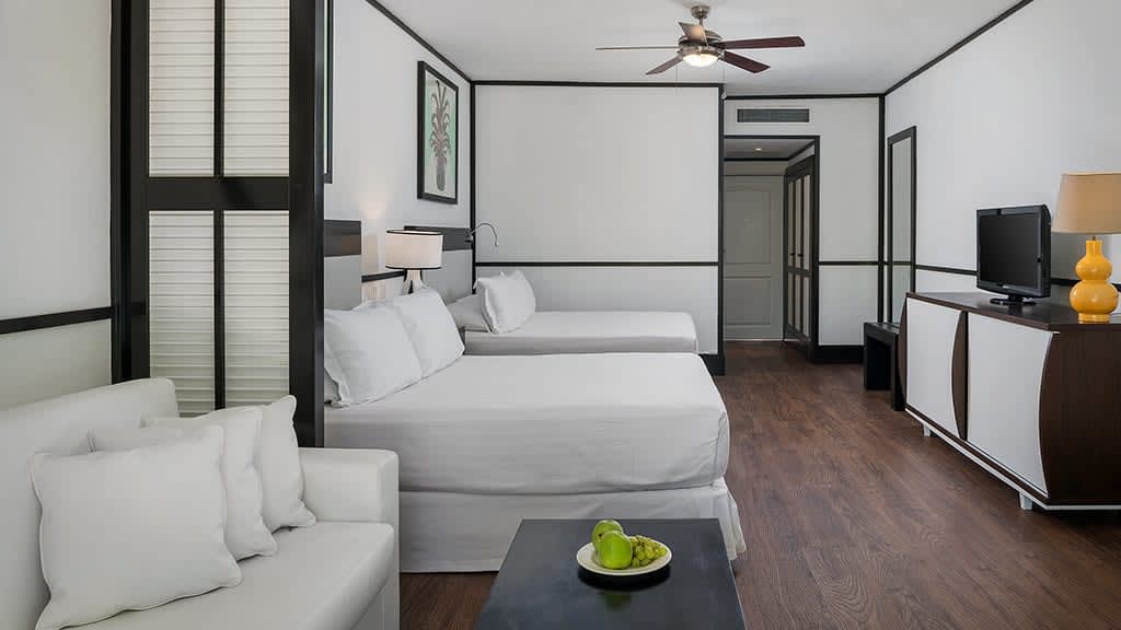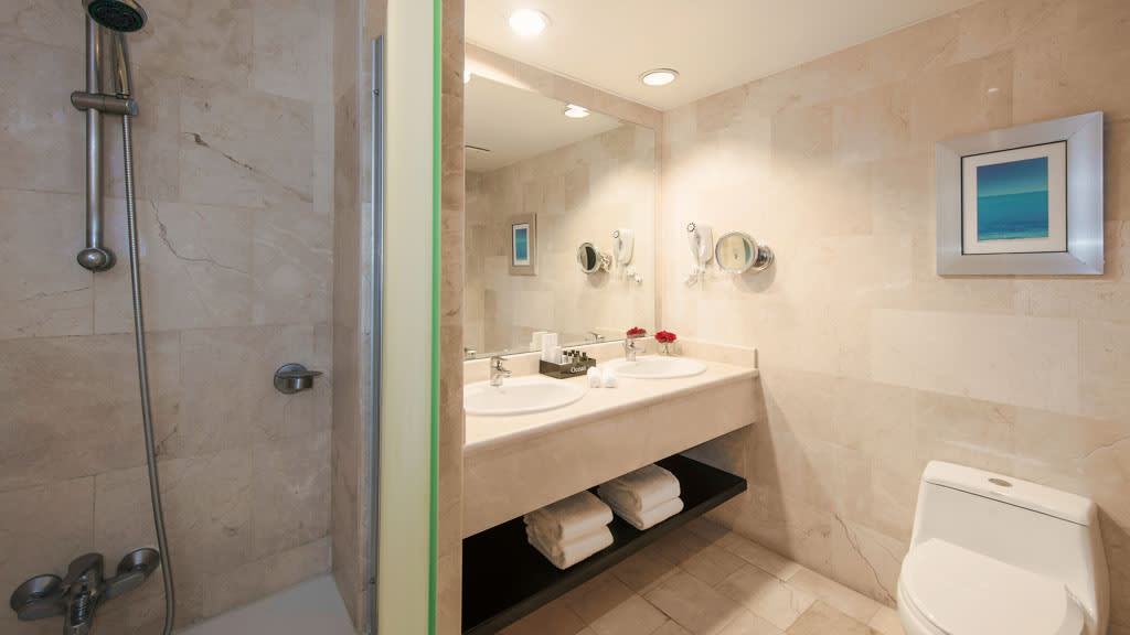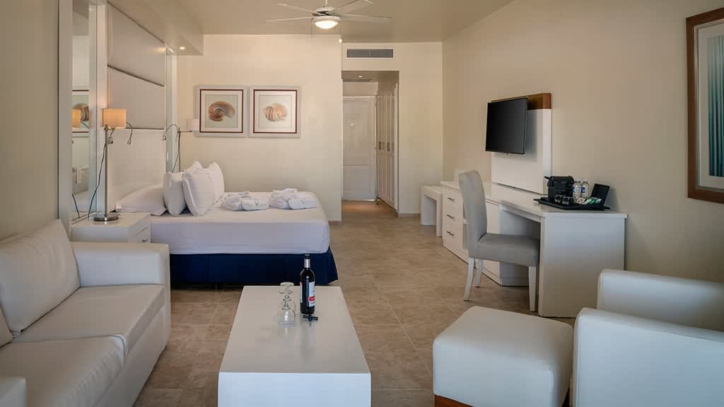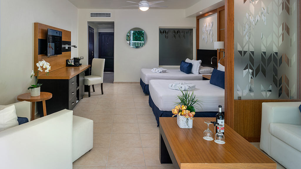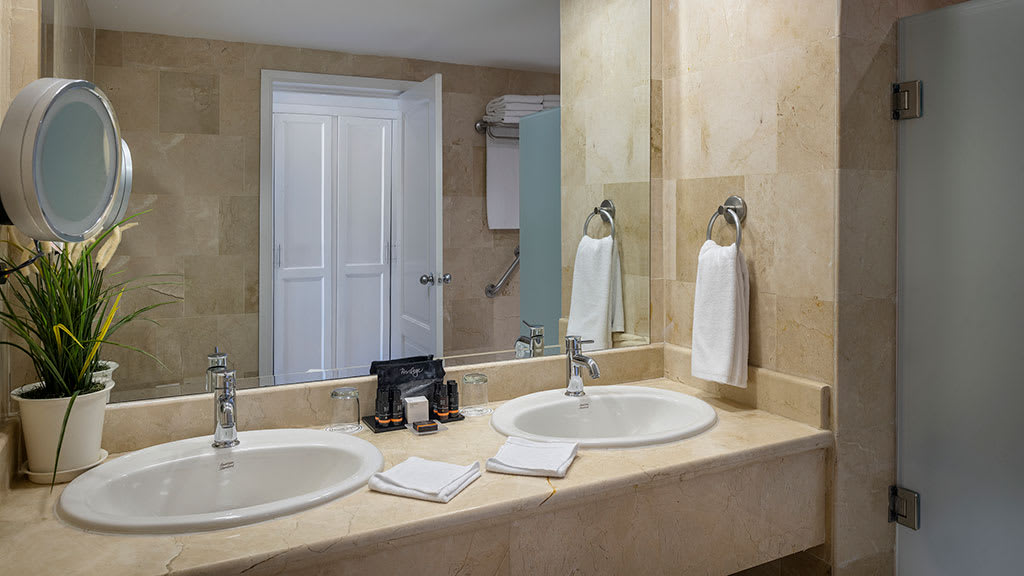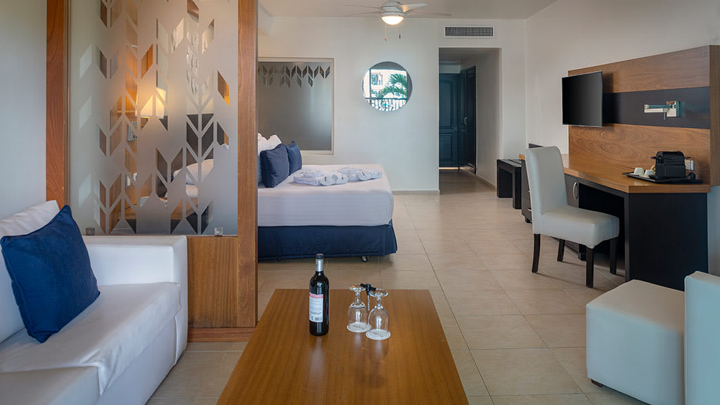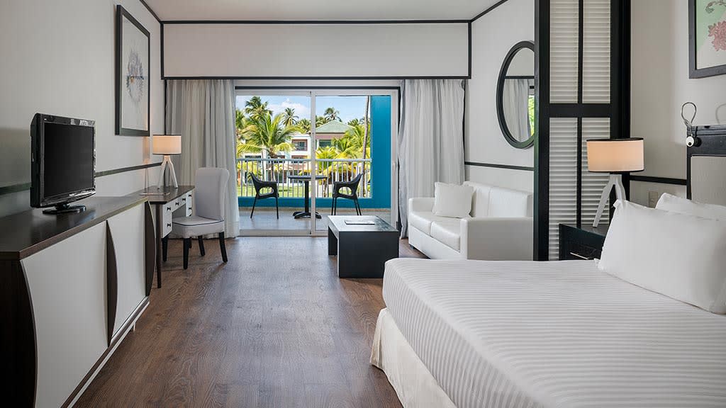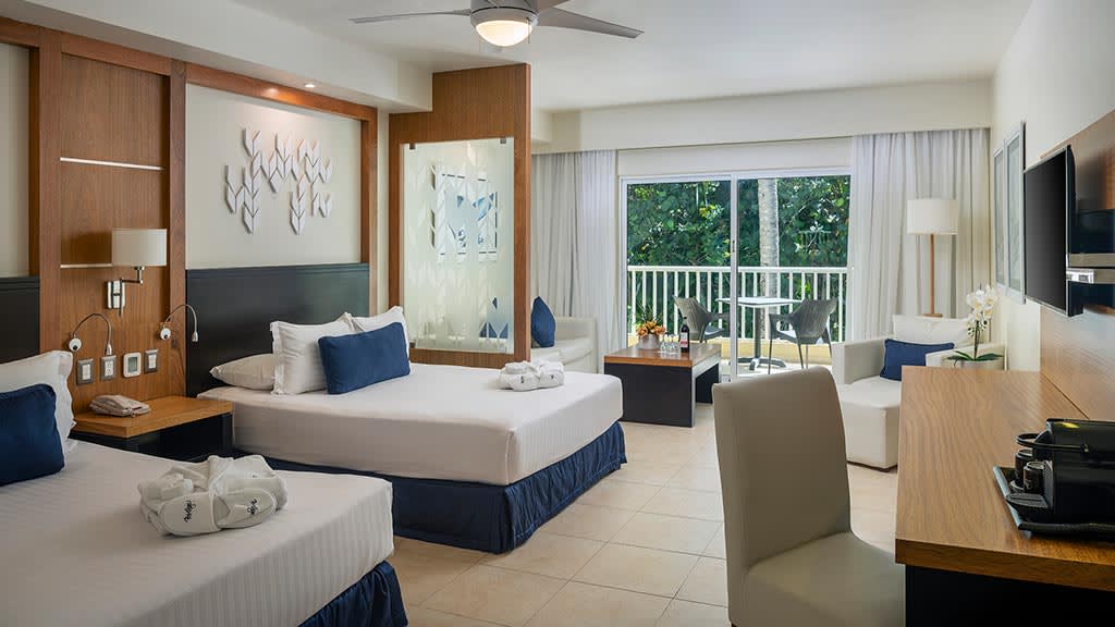 Discover the pristine white-sand beaches and turquoise waters of Punta Cana at the all-inclusive Ocean Blue and Sand, offering something for guests of all ages. Lounge by one of the sparkling pools while mini-vacationers and teenagers enjoy plenty of exciting activities at the on-site kids and teen clubs. Head to the beautiful beach and soak up the sun on a lavish Bali bed or try a variety of exciting non-motorized water sports like kayaking and windsurfing. There’s plenty of family fun to be had with resort-offered activities including a climbing wall, archery and more! When it’s time to grab a bite to eat, take your pick of delicious dining options at the buffet and à la carte restaurants offering something for everyone to enjoy. Dance the night away at the on-site nightclub or test your luck at the casino before retiring to spacious suites featuring well-appointed amenities like a private balcony or terrace, stocked mini-bar and room service. For added luxury, upgrade to Privilege room categories to enjoy access to exclusive resort areas like a private beach, concierge and butler service, lavish amenities and more.