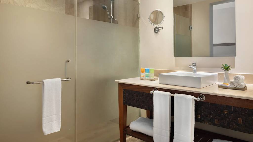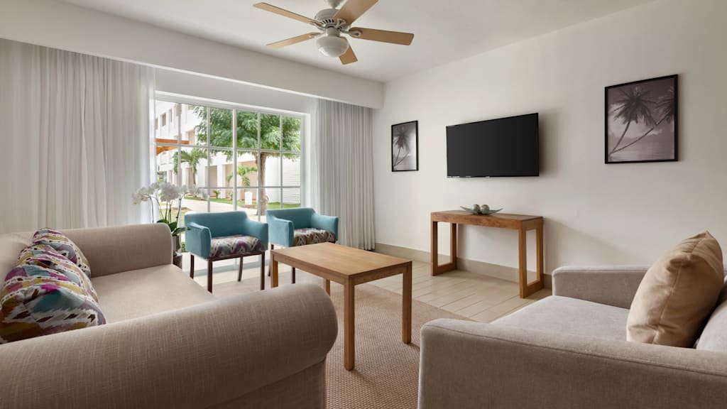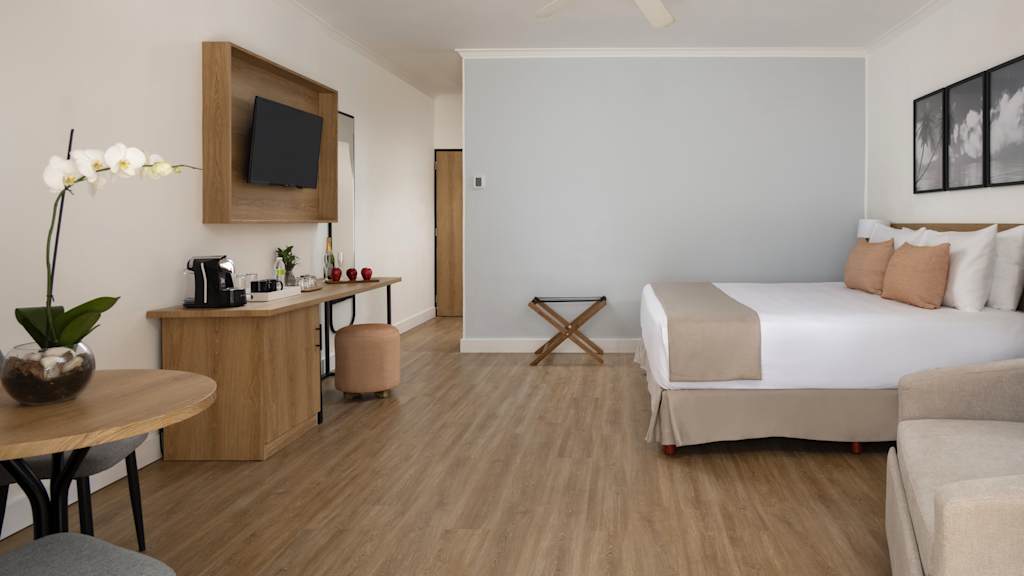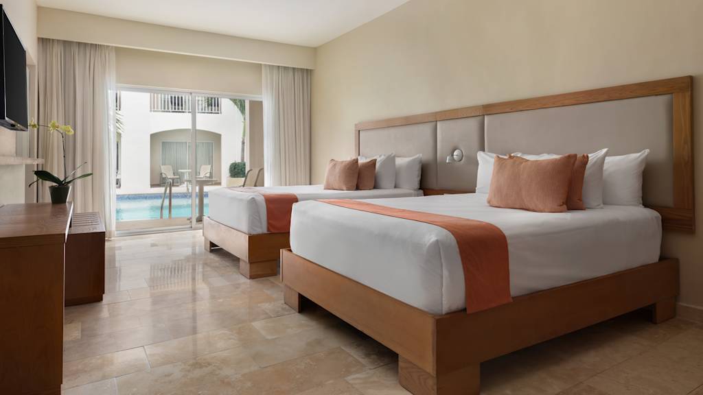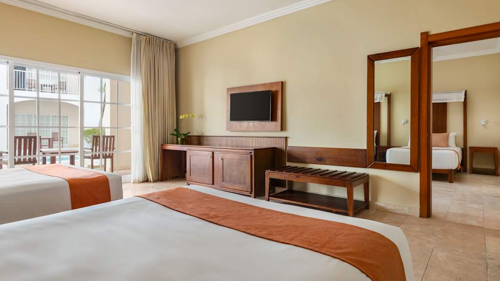 Escape to Sunscape Coco Punta Cana, an oceanfront property located in the heart of Cabeza de Toro offering live music, local entertainment and activities for all ages. Surrounded by a white-sand beach, glistening aquamarine waters and the Bavaro natural lagoon reserve, this property is the ultimate destination for adventure and relaxation. Kick off your stay with a family game of beach or pool volleyball or basketball, before making your way to one of the 14 on-site dining options to refuel. Then, cool off by one of the property’s six pools or at the beach, and get VIP treatment with pool and beachside wait service. Vacationers looking for some solo time can indulge in a beachside massage, pump some iron at the fully equipped and air conditioned fitness centre. The tiny-travellers on the other hand can take advantage of Unlimited-Fun® with a visit to the Explorer’s Club or Core Zone Teen’s Club for the thrilling activity programs and splash park. Treat yourself to a cocktail at one of the five bars before visiting the casino or enjoying a movie under the stars. Retire to your accommodations complete with a private balcony and enough room for families of all sizes.