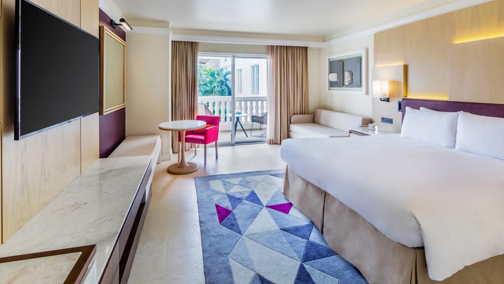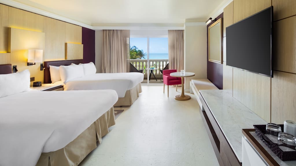 Unwind in luxury on the white-sand shores of Montego Bay at Hyatt Ziva Rose Hall. This upscale resort provides exciting activities both day and night, with top-notch amenities and world-class service. Stay active with a variety of water sports, while golf enthusiasts tee off at nearby White Witch Golf Course. Head to the Zen Spa for a soothing treatment while kids have a blast at the complimentary kids and teen clubs. Enjoy diverse dining options, from gourmet buffets to unique à la carte menus and 24-hour room service. In the evening, relax under the stars by an oceanside fire pit or enjoy an exciting evening show at the outdoor theatre.