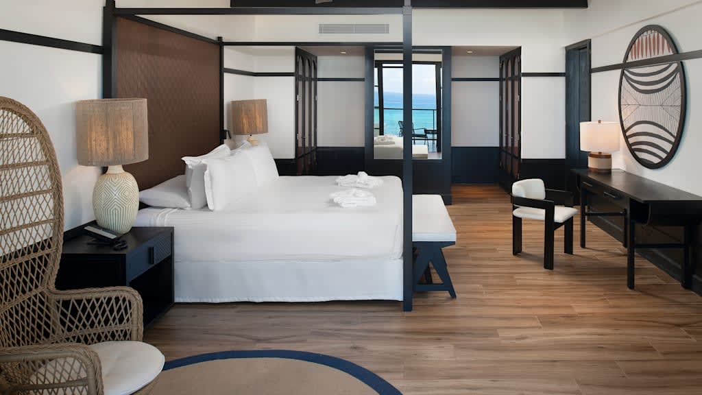 Tucked away between Montego Bay’s lush landscapes and the turquoise waters of the Caribbean Sea, the brand-new Ocean Eden Bay is an adults only oasis that’s perfect for upscale getaways in paradise. Spend sunny days lounging on the white-sand beach, cooling off in the pristine pool with bar service or taking advantage of complimentary non-motorized water sports. Treat yourself at the on-site Despacio Spa, featuring a range of treatments and facilities from relaxing Jacuzzi sessions to therapeutic massages. In the evenings, show off your skills at the on-site bowling alley and dance the night away at the stylish nightclub. Savour delectable cuisines and unique dining experiences at on-site restaurants, whether you want to enjoy a romantic date night at Bluemoon, taste authentic Caribbean flavours at the Beach Restaurant or enjoy themed entertainment paired with delightful dishes at the Senses Dinner Show. Plus, you’ll receive complete access to the amenities and services at neighbouring resort Ocean Coral Spring. Choose from a range of spacious accommodation options including swim-out options, oceanview balconies and two-story rooftop suites with private Jacuzzis. For an elevated experience, upgrade to Privilege Club room categories to enjoy lavish extras such as access to a private pool and beach section with palapas and sun loungers, preferential reservations at all à la carte venues, breakfast in bed and much more.