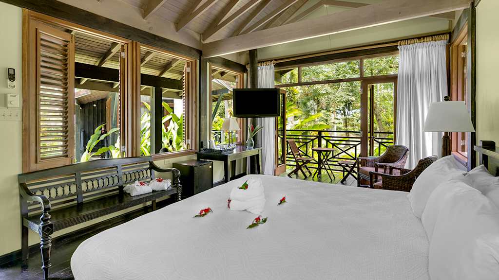• Unique treehouse-style accommodations tucked amidst lush gardens