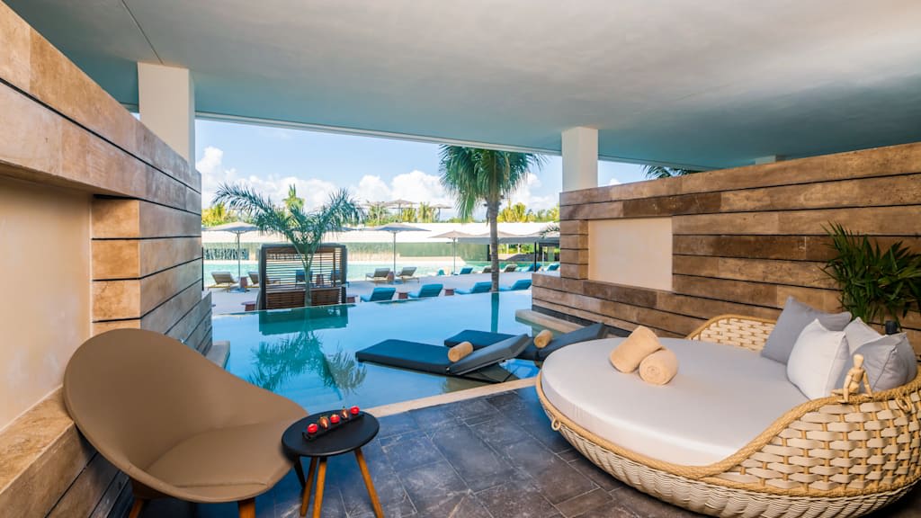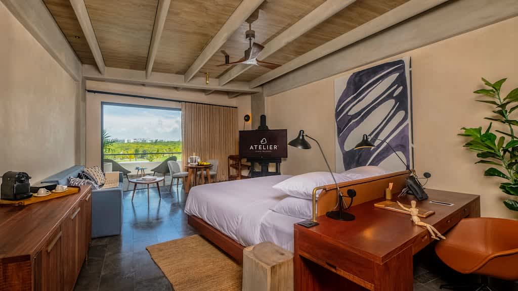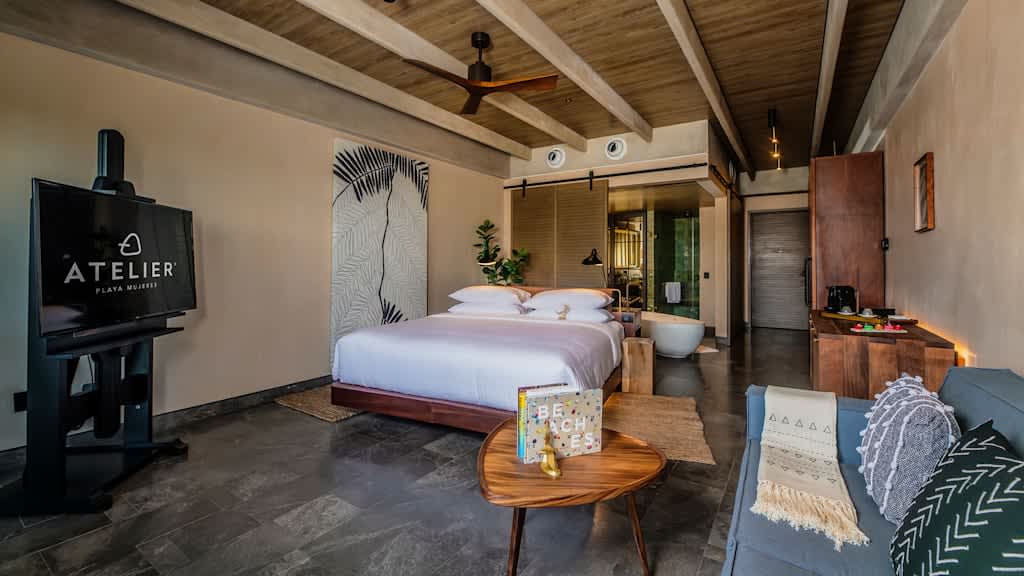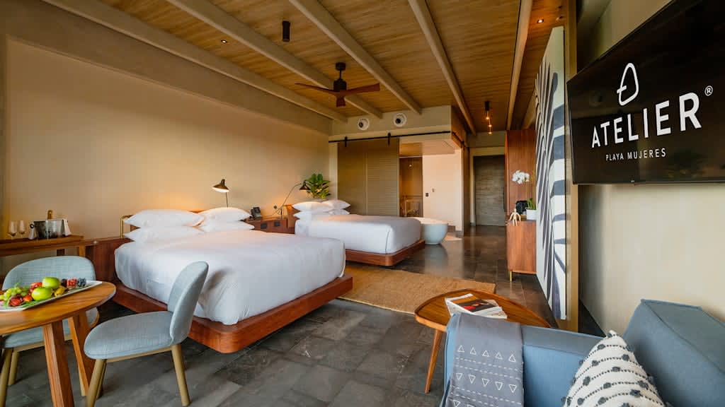 Located in the exclusive gated complex of Playa Mujeres, the adults only Atelier Playa Mujeres offers a unique and sophisticated all inclusive experience on the pristine shores of the Caribbean Sea. Embrace your creative side with art shows and classes and admire contemporary Mexican art located throughout the resort grounds. Pamper yourself from head to toe at the on-site wellness centre featuring lavish treatment cabins, a hydrotherapy circuit ($) and fitness facilities. In the afternoon, participate in various resort-offered activities then settle in for the evening and watch live musical performances right on site. There are plenty of delicious dining options to satisfy every palate, from heathy options and light fare at the snack bar to gourmet dishes prepared by a celebrity chef. At the end of the night, relax in lavish accommodations with views of the sparkling Caribbean Sea or the golf course and luxurious amenities.