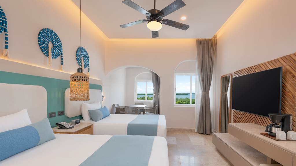 Located in Cancun’s vibrant Hotel Zone, GR Solaris Caribe All Inclusive is a charming family-friendly resort perfect for sun and sand getaways. Spend your days soaking up the sun on the private beachfront or by the sparkling pool with a refreshing drink from the pool bar. Mini-vacationers will have a blast at the mini water park and the fun-filled kids club, located nearby at Royal Solaris Cancun, while the whole family can participate in some non-motorized water sports ($). Hit the lobby bar and sip on your favourite cocktail to the sounds of live music every night and explore the amenities and facilities at Royal Solaris Cancun next door. At the end of the day, retire to comfortable accommodations with convenient 24-hour room service ($) and beautiful lagoon or ocean views.