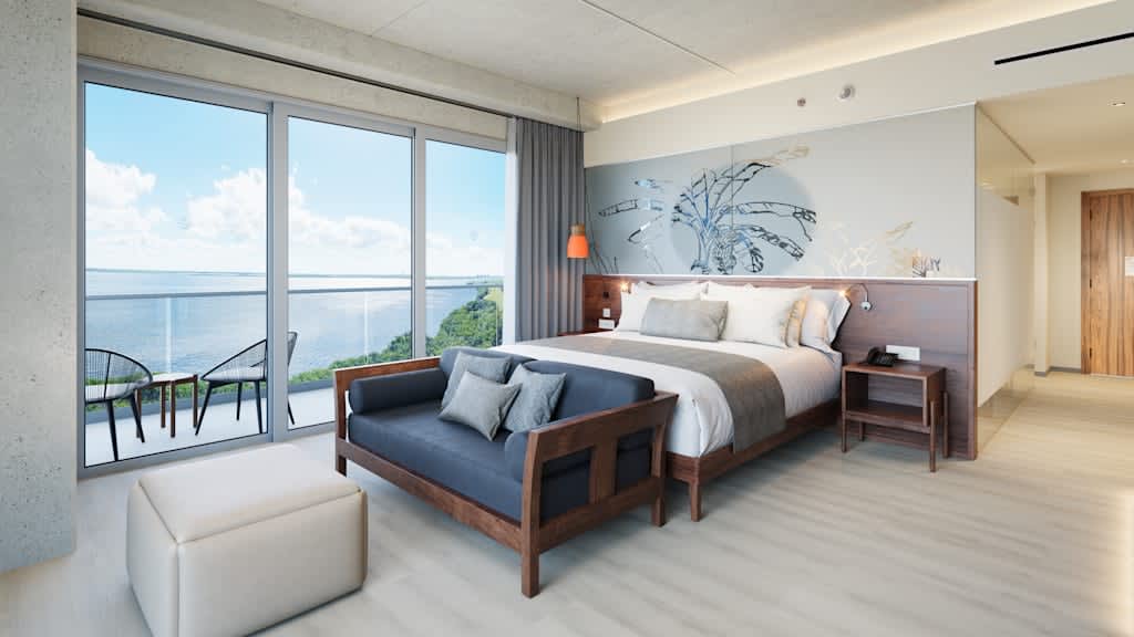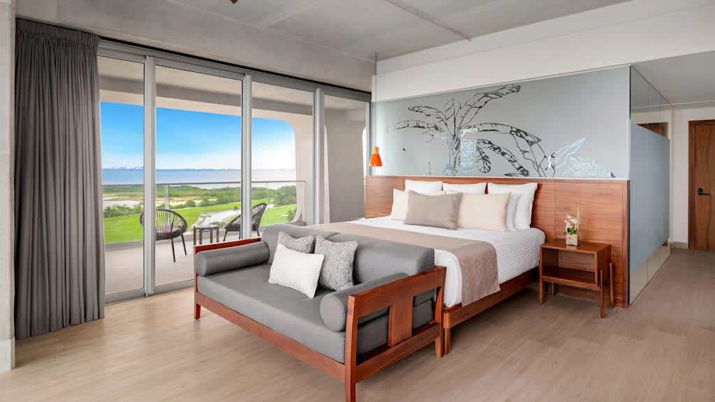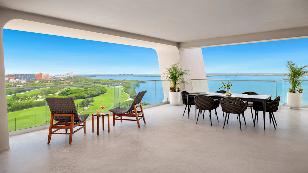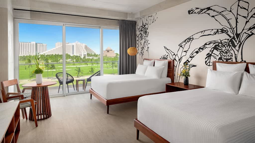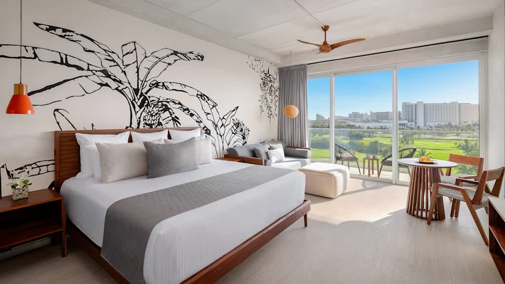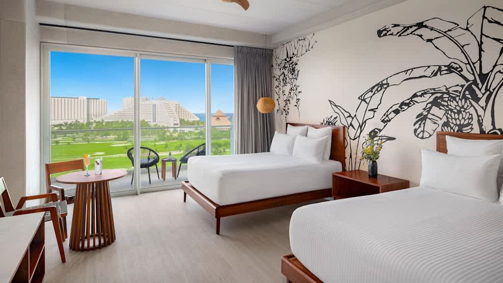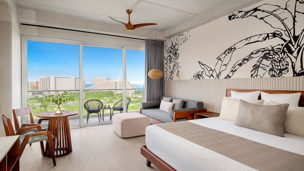 Nestled between the Nichupté Lagoon and Caribbean Sea, Hyatt Vivid Grand Island is an adults only paradise set in a gated community. The resort is ideally located near the spirited Cancun Hotel Zone with shopping and gourmet restaurants, and boasts a beautiful design featuring Mayan influences coupled with modern finishes and bohemian flair. You can lounge by one of three pools right on site, including Cancun’s longest rooftop pool, spanning 295 feet long and with 360-degree views, exclusive to Vantage Club guests. Hop on board the complimentary shuttle and make your way to Ennea Beach Club at Playa Delfines for some sun, sand and adventures at sea, then return to the hotel for a number of activities on site, like yoga, cocktail lessons, pastry classes, pottery and more. For quick mid-day bites, get your fix at the poolside ceviche cart or snacking on a taco tower at the food truck before enjoying uniquely designed culinary experiences at dinner. Retreat to your tastefully decorated accommodations, some with ocean and bay views and top-notch amenities, or upgrade to Vantage Club suites where you’ll enjoy exclusive access to the private lounge and breakfast spot, upgraded in-room amenities, preferred room locations and more.
