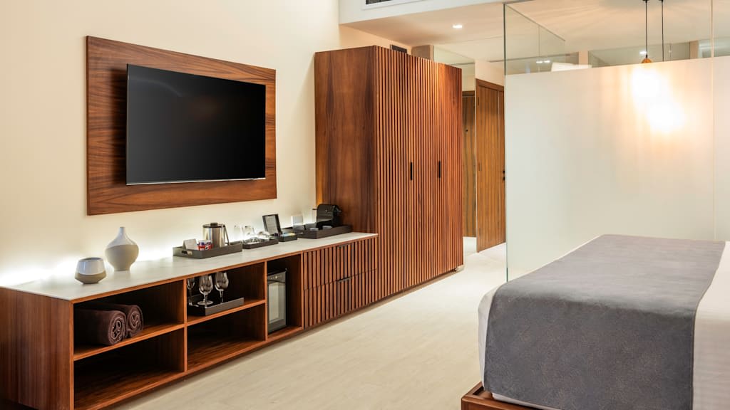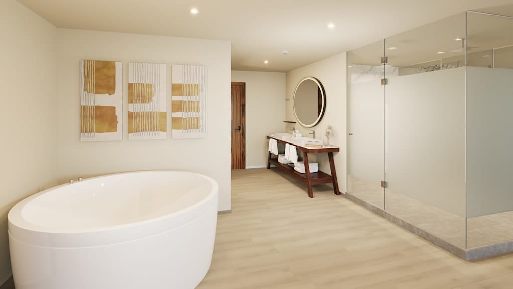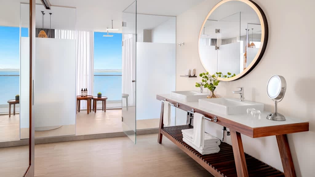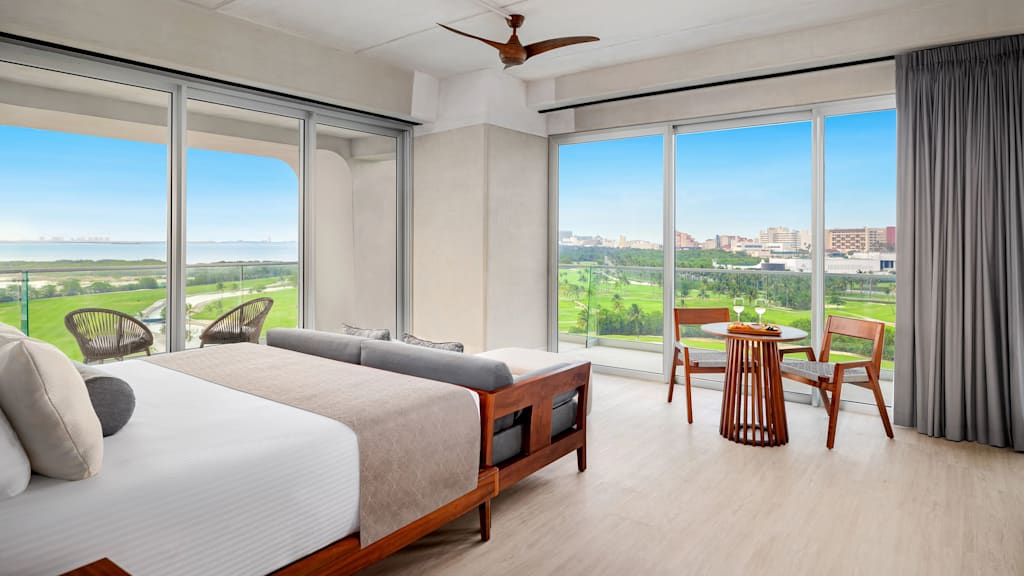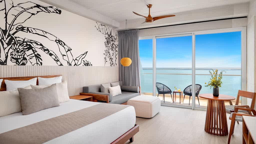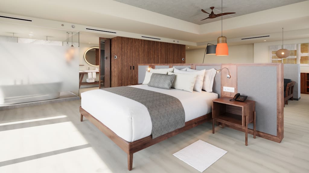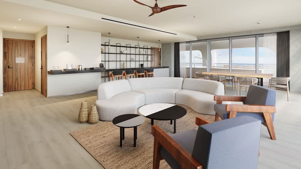 Nestled between the Nichupté Lagoon and Caribbean Sea, Hyatt Vivid Grand Island is an adults only paradise set in a gated community. The resort is ideally located near the spirited Cancun Hotel Zone with shopping and gourmet restaurants, and boasts a beautiful design featuring Mayan influences coupled with modern finishes and bohemian flair. You can lounge by one of three pools right on site, including Cancun’s longest rooftop pool, spanning 295 feet long and with 360-degree views, exclusive to Vantage Club guests. Hop on board the complimentary shuttle and make your way to Ennea Beach Club at Playa Delfines for some sun, sand and adventures at sea, then return to the hotel for a number of activities on site, like yoga, cocktail lessons, pastry classes, pottery and more. For quick mid-day bites, get your fix at the poolside ceviche cart or snacking on a taco tower at the food truck before enjoying uniquely designed culinary experiences at dinner. Retreat to your tastefully decorated accommodations, some with ocean and bay views and top-notch amenities, or upgrade to Vantage Club suites where you’ll enjoy exclusive access to the private lounge and breakfast spot, upgraded in-room amenities, preferred room locations and more.
