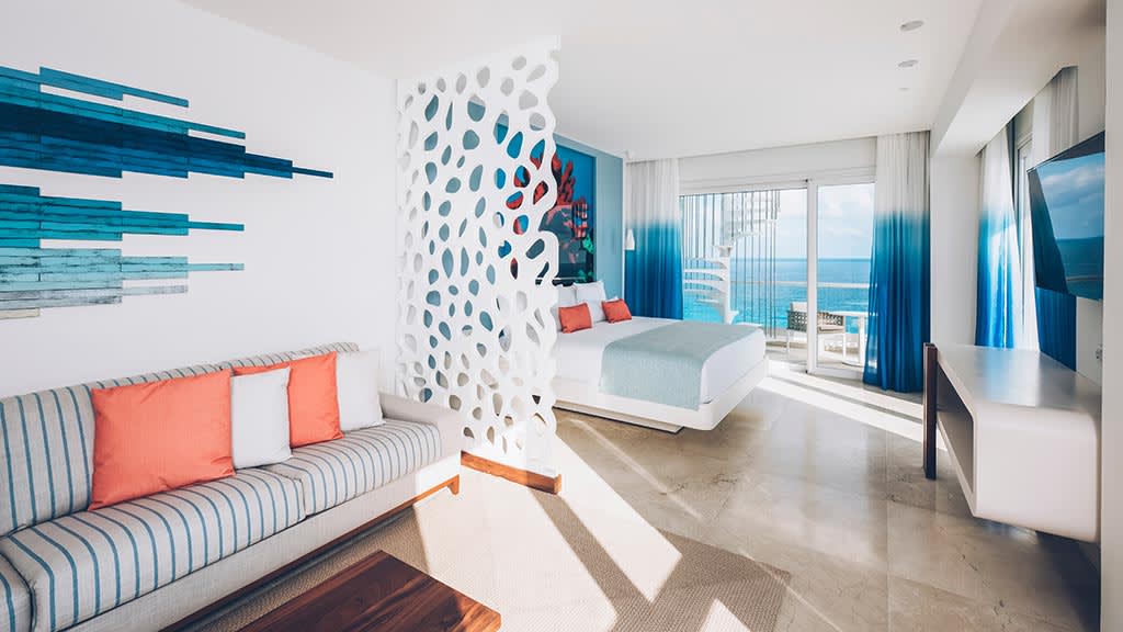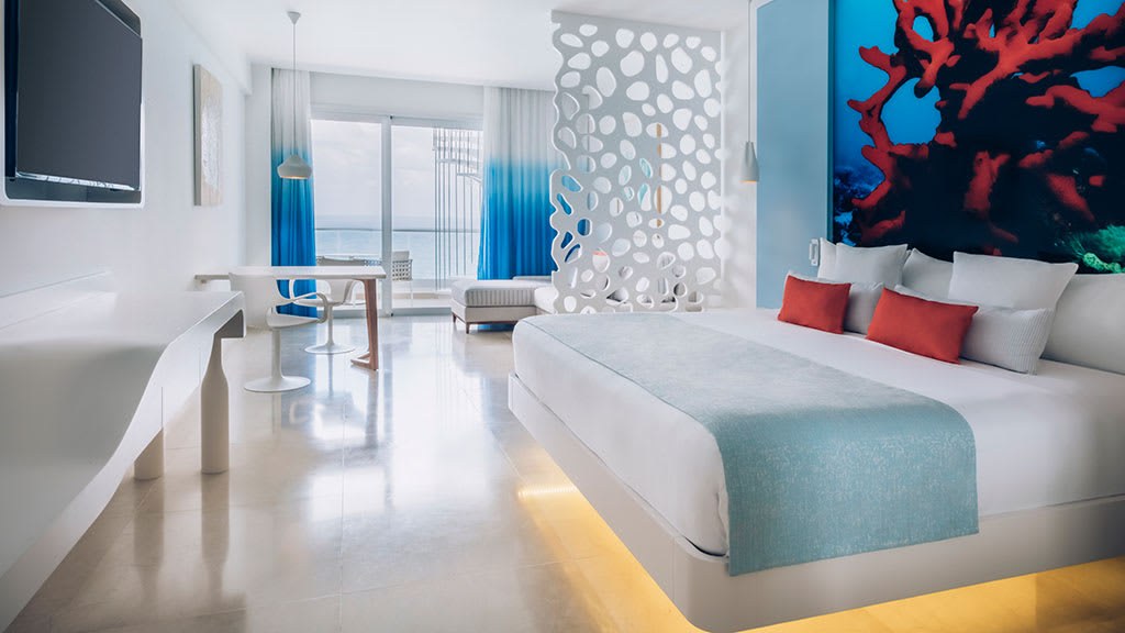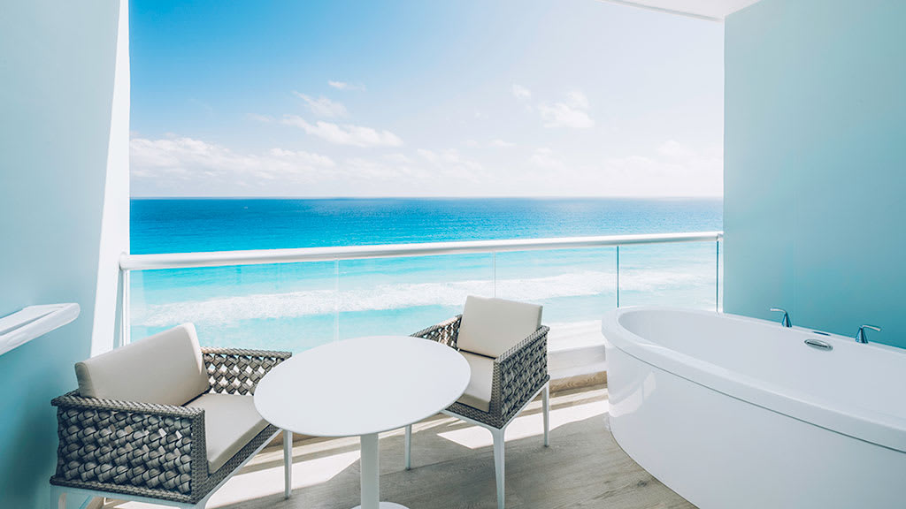 Nestled on the sparkling white-sand shores of Cancun, the adults only Iberostar Selection Coral Cancun is an exclusive resort-within-a-resort offering modern accommodations and luxurious amenities. Spend your days relaxing by the private beach area on a lavish Bali bed or soaking up the sun by the pool with your favourite drink in hand from the swim-up bar. Join in on resort-offered activities from mixology classes and wine tasting to dance lessons and archery and enjoy access to the facilities at Iberostar Cancun including its sparkling pools and splash park. You can look forward to exclusive amenities throughout your stay including 24-hour room service, a premium mini-bar that’s restocked daily, a welcome bottle of sparkling wine, delicious daily snacks and more. After a relaxing day spent in paradise, retire to all-suite accommodations featuring private balconies with Jacuzzis and spectacular ocean views.
