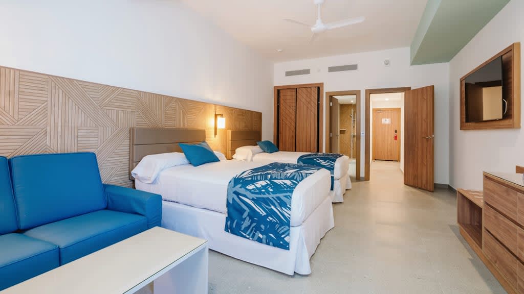 Nestled on the shores of Costa Mujeres overlooking the sparkling waters of the Caribbean Sea, you’ll find the adults only Riu Latino, a stunning resort offering endless fun in the sun. Perfect for couples and groups of friends looking to spend quality time in the tropics, there’s plenty to keep you entertained from sunrise to sunset. Start your day basking in the tropical sun on the resort’s beautiful stretch of beach and try out some non-motorized water sports like kayaking, catamaran rides and snorkelling alongside colourful coral reefs. Kick back and relax by one of the pools with a drink in hand from the swim-up bars before zooming down waterslides at the Splash Water World water park. Don’t miss your chance to get pampered in paradise and visit the on-site Renova Spa offering a steam room, relaxation pools range of beauty and therapeutic treatments. When the mood strikes, you can look forward to a variety of delectable cuisines offered at the restaurants dotted throughout the property, from international dishes at the Moctezuma buffet to Asian specialties at Geisha, Italian favourites from Milan and Pepe’s Grill for quick bites to keep you going in between meals. When the sun goes down, sip on a nightcap at one of the stylish bars or dance the night away at Pacha nightclub before retiring to spacious accommodations with modern amenities to make you feel right at home.