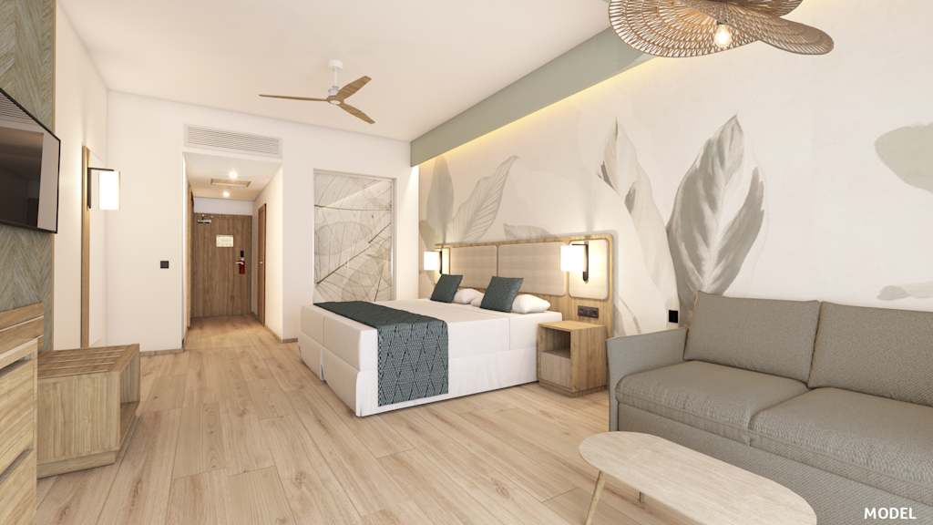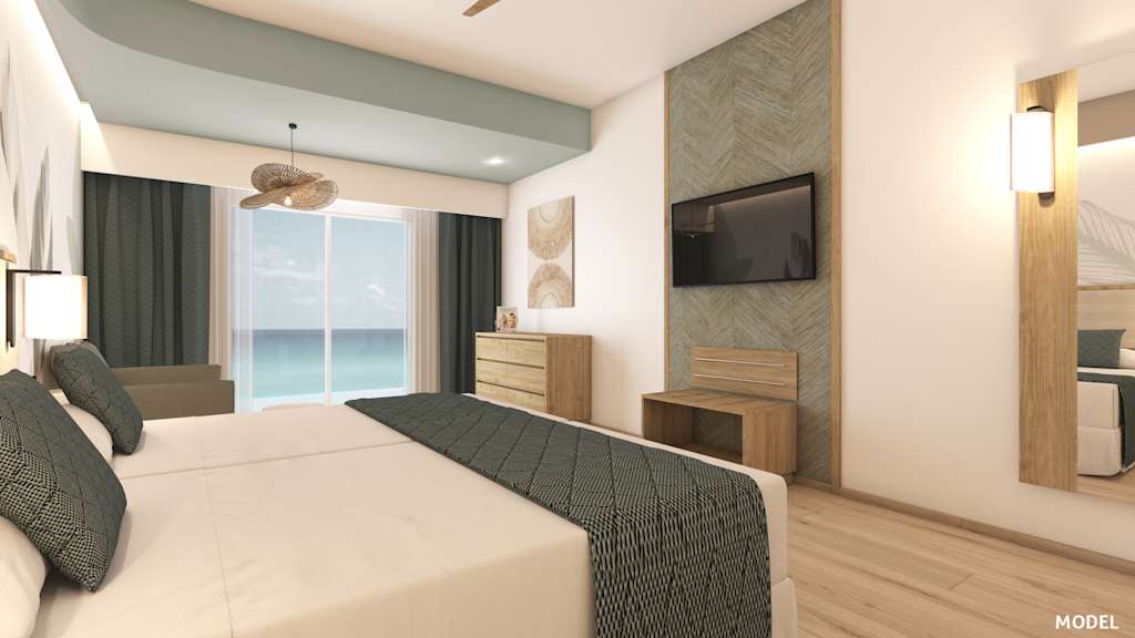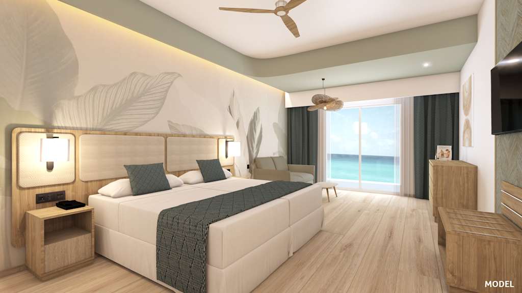 The newest addition to RIU’s lineup in Cancun opening December 2025, Riu Ventura offers exciting escapes for travellers of every age on the Mexican Caribbean coast. Set directly on Playa Delfines in the midst of Cancun’s exclusive Hotel Zone, vacationers can spend their days at the beach or lounging by one of six pools, including one on the sixth floor with a poolside bar and views of the sea. Families travelling together will appreciate the kid-friendly amenities such as the RiuLand Kids Club with several daytime activities, as well as the adults only facilities like Renova Spa ($) and access to RIU’s famous themed parties at Riu Caribe (transfers included). The splash pad, beach volleyball court and RIU’s entertainment program are available for that family fun, plus numerous dining venues to frequent throughout your stay. Round out the day with live music and shows on site, or venture off to explore the shopping, restaurants and all-ages entertainment in Cancun. Your oceanview, swim-out or two-bedroom accommodation await your return, but be sure to take advantage of the 24-hour room service and treat yourself to a delicious snack or beverage.