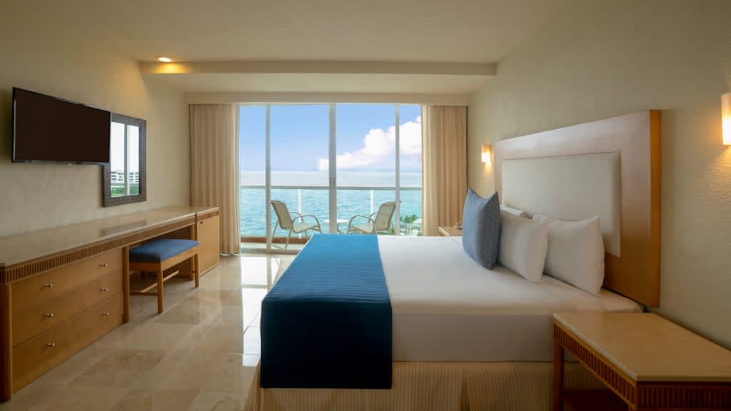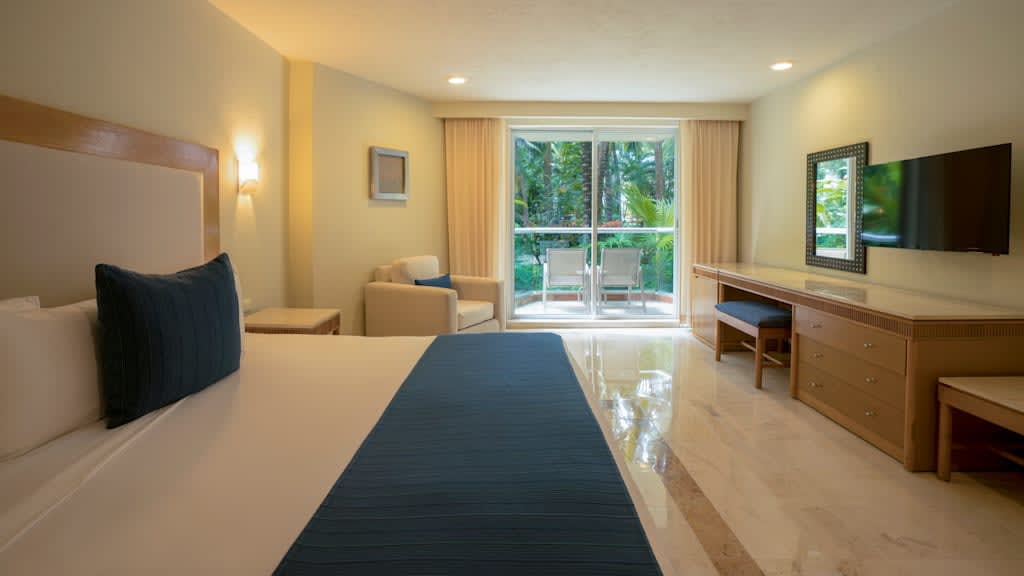 Set along the white-sand shores of an island paradise off the coast of Cancun, Grand Park Royal Cozumel offers guests of all ages a luxurious getaway inspired by the beauty of the Caribbean. Unwind in style in elegant Bali beds that line the sparkling pools including a stylish oceanfront infinity pool with a swim-up bar. Mini-vacationers will have plenty of fun in the sun at the on-site kids club with daily activities and a kids pool equipped with water slides. Take a stroll through the resort gardens and through a private underpass to get to the white-sand beach where the whole family can build sandcastles and enjoy the warm rays of the Caribbean sun. Take the edge of with a relaxing treatment at the luxurious spa or enjoy a soak and sweeping views of the coast in one of the oceanfront Jacuzzis. Savour a variety of delectable cuisines from the on-site buffet and à la carte restaurants serving up everything from Mexican favourites to Italian classics and fresh seafood, grab a bite on the go at one of the snack bars and cap off your meal with a sweet treat from the café. When the sun goes down, take in lively entertainment at the open-air amphitheater or dance the night away at the adults only sports bar before retiring to lavish accommodations with well-appointed amenities like 24-hour room service, mini-bar stocked daily and a private balcony.
