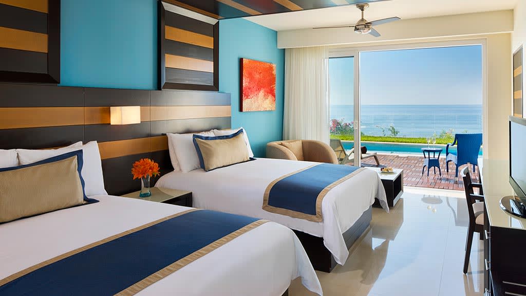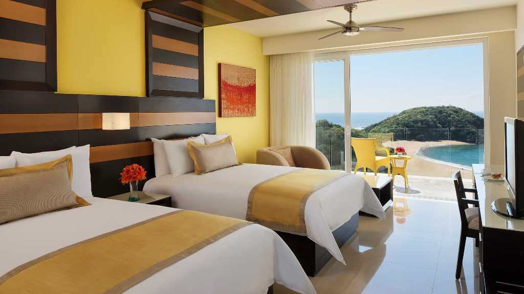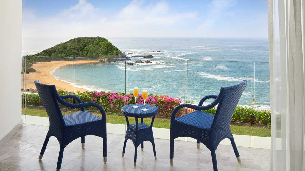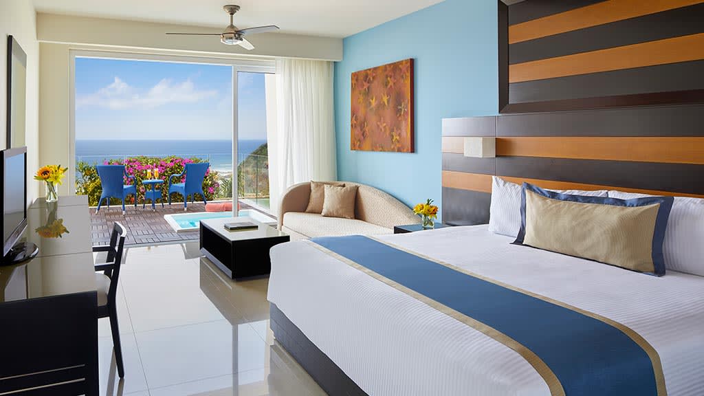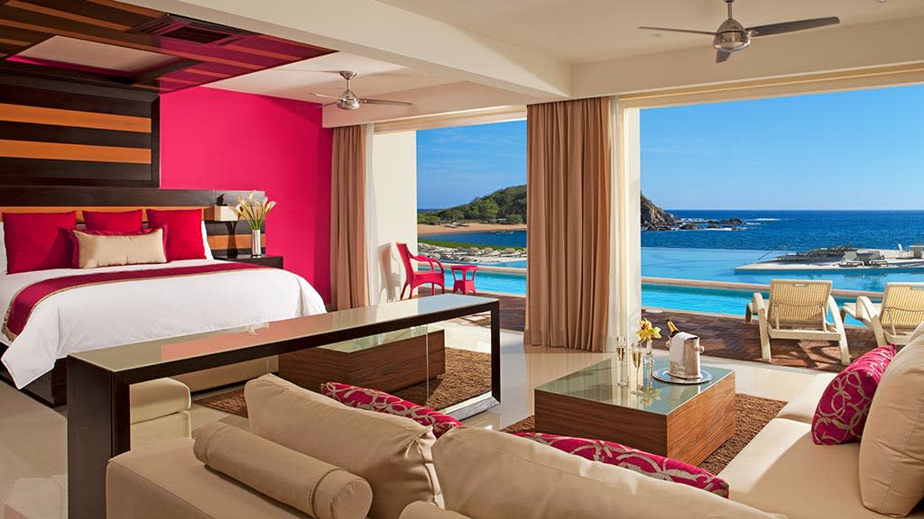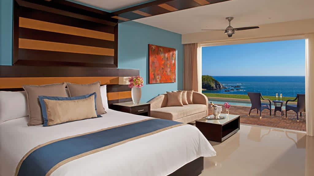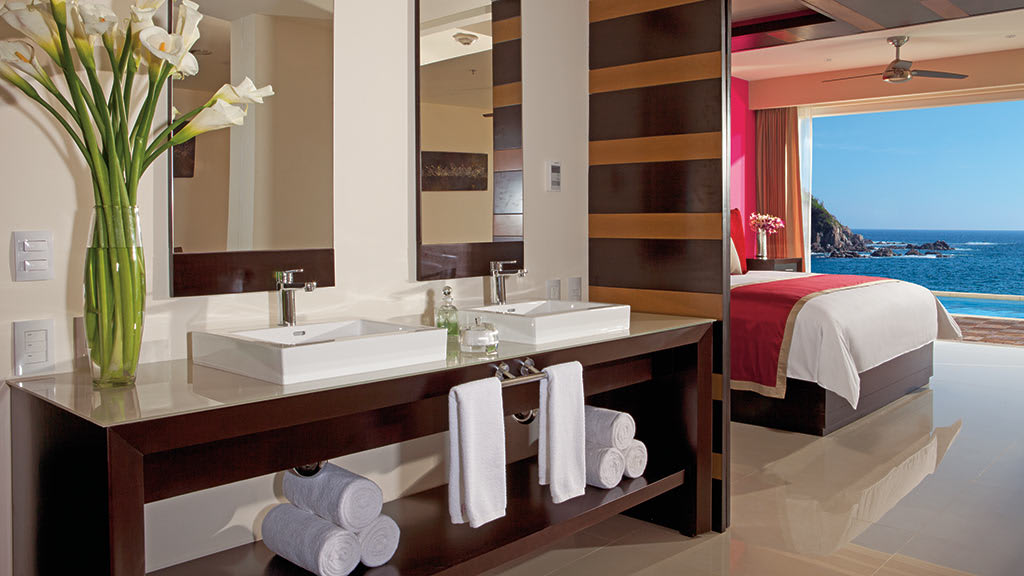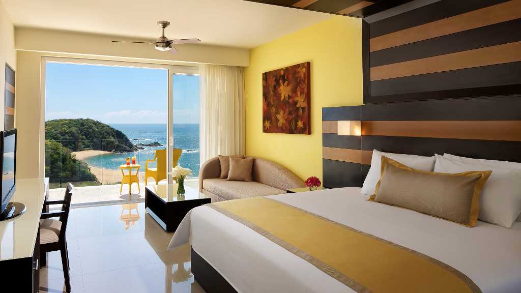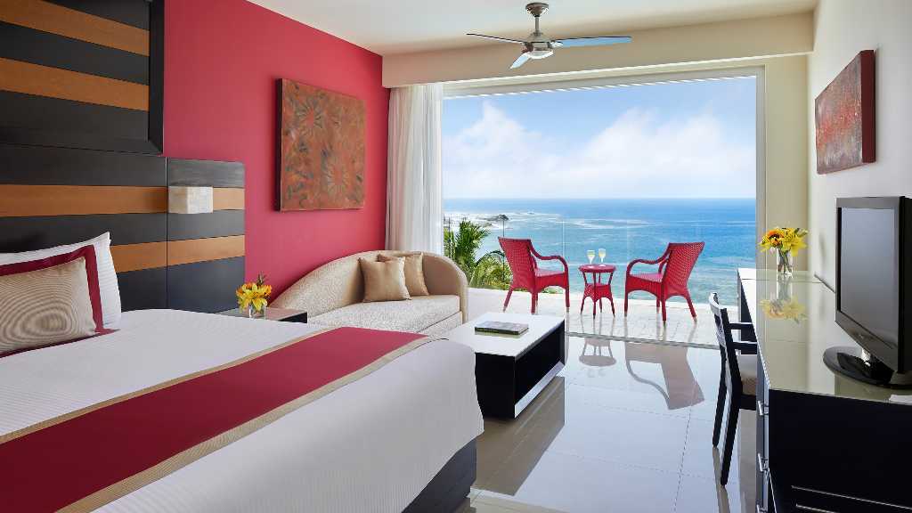 The adults only Secrets Huatulco Resort and Spa is nestled on a secluded cove surrounded by unique rock formations in beautiful Pacific Mexico. You can enjoy an upscale vacation experience with luxury amenities and world-class service without the hassle of wristbands. Spend your days relaxing by the pool or exploring along the coast with non-motorized water sports like kayaking and snorkelling. Unwind with a visit to the on-site spa offering a range of treatments and facilities including a hydrotherapy circuit, Jacuzzi and steam baths ($). Savour unlimited gourmet dining around the clock at on-site restaurants serving up everything from fine French cuisine to local flavours, plus 24-hour room service for breakfast in bed or late night bites. After a relaxing day on the resort, retire to spacious accommodations with well-appointed amenities including swim-out and oceanview options. Upgrade to Preferred Club room categories to elevate your getaway with access to exclusive resort areas and added amenities.