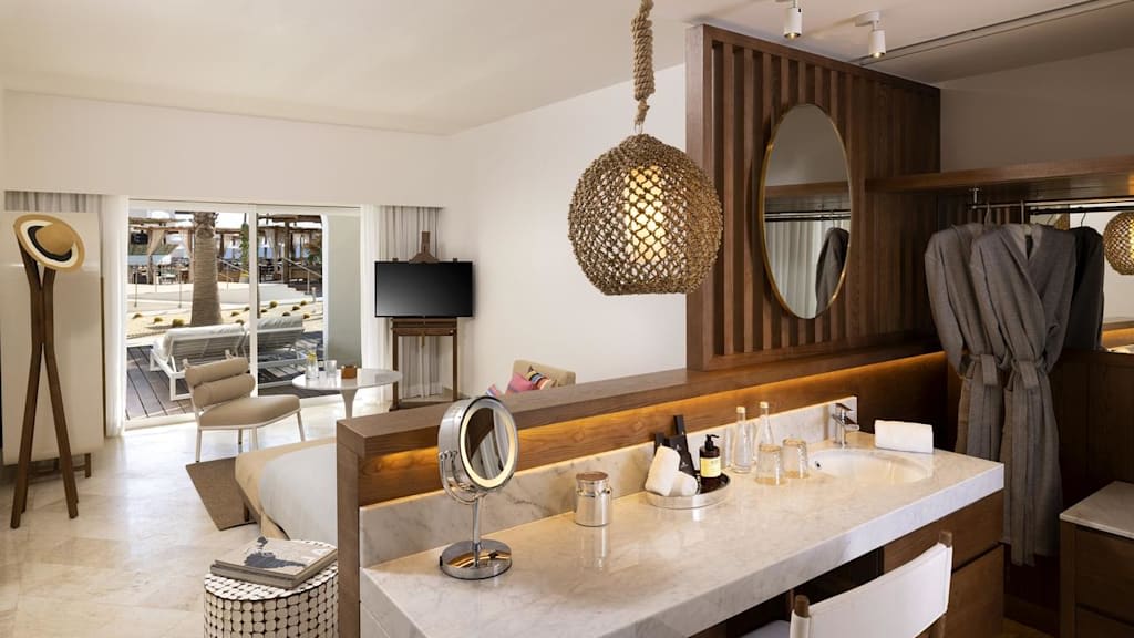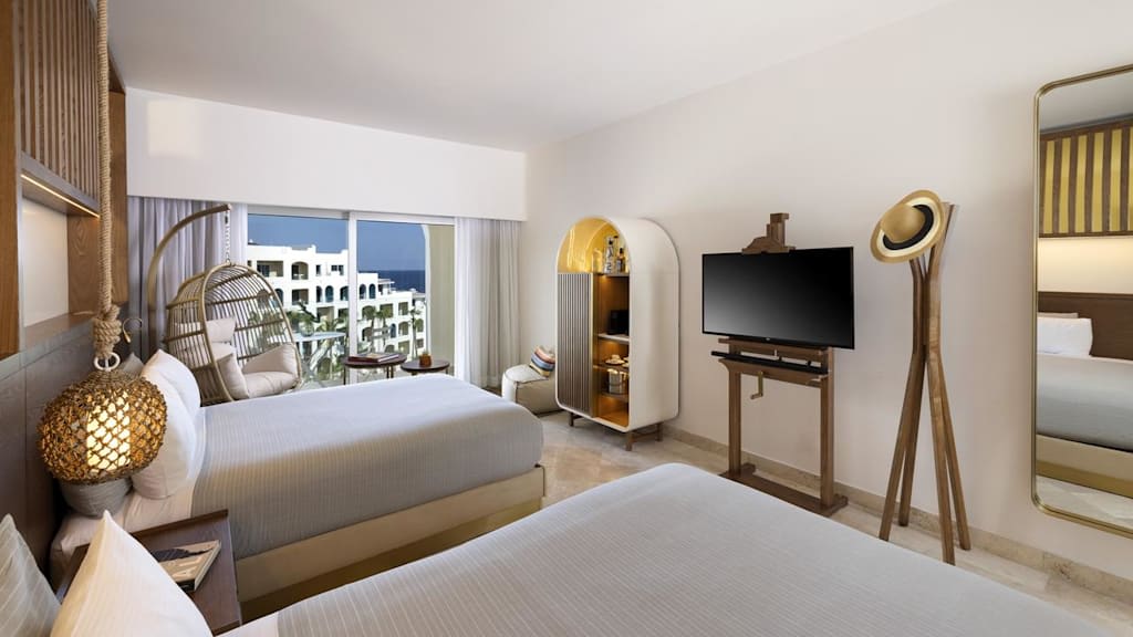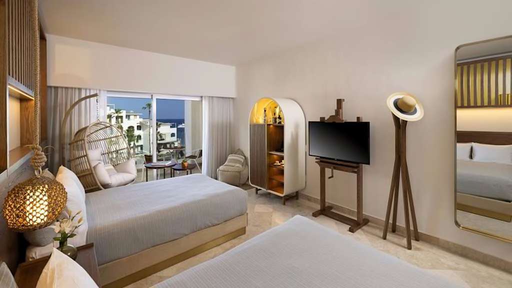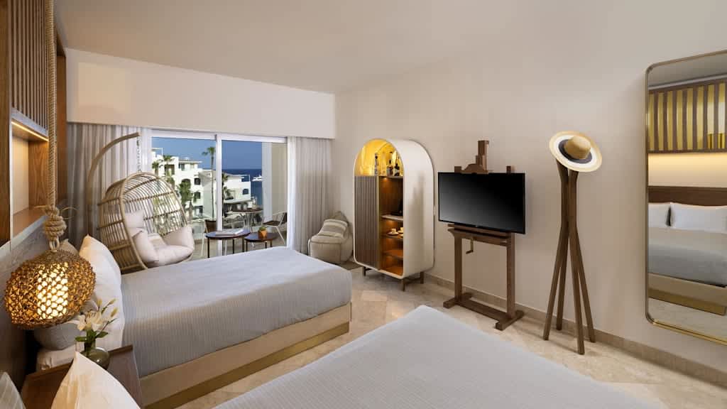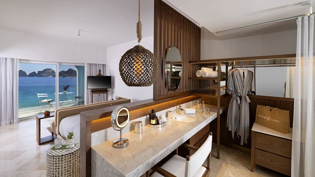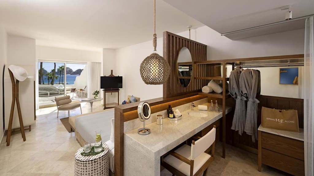 Overlooking the sparkling Pacific Ocean on the southernmost tip of Mexico’s Baja Peninsula, ME Cabo By Melia is a stylish resort and the perfect destination for sun and sand getaways in Los Cabos. Discerning travellers of all ages will appreciate the resort’s lavish amenities and sophisticated design, blending elegance with the local culture. Nestled along the only swimmable beach in the area, you can spend your days soaking up the sun on the golden-sand shores or unwind in style on a Bali bed ($) by one of the heated pools. Look and feel your best by taking advantage of the resort’s KORPO Wellness Experience ($) offering signature treatments like Temazcal-inspired therapies and relaxing massages. Indulge in your choices of international gastronomy and savour delectable dishes at the resort’s chic dining venues from Mediterranean cuisine at Taboo Beach Club to Mexican classics at Mamazzita and Asian-inspired specialties at the adults only Funky Geisha. Sip on a nightcap and take in sweeping views of the Sea of Cortez at Confessions Skybar & Tapas, featuring creative mixology and a resident DJ before retiring to impeccably decorated rooms equipped with well-appointed amenities including spacious balconies or terraces, rain showers and more. Take your getaway to the next level with ME+ room categories offering elevated amenities and services during your stay in paradise.