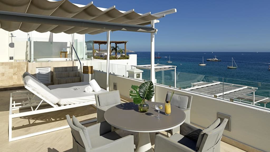 • Nestled on the only swimmable beach in Los Cabos, overlooking El Arco
