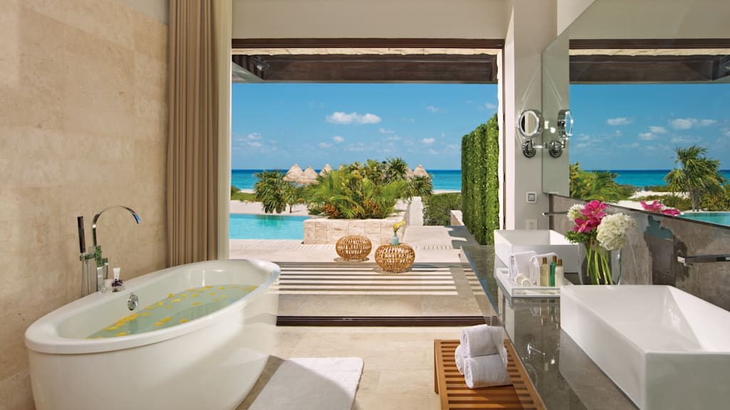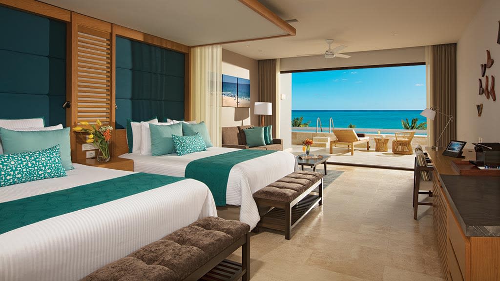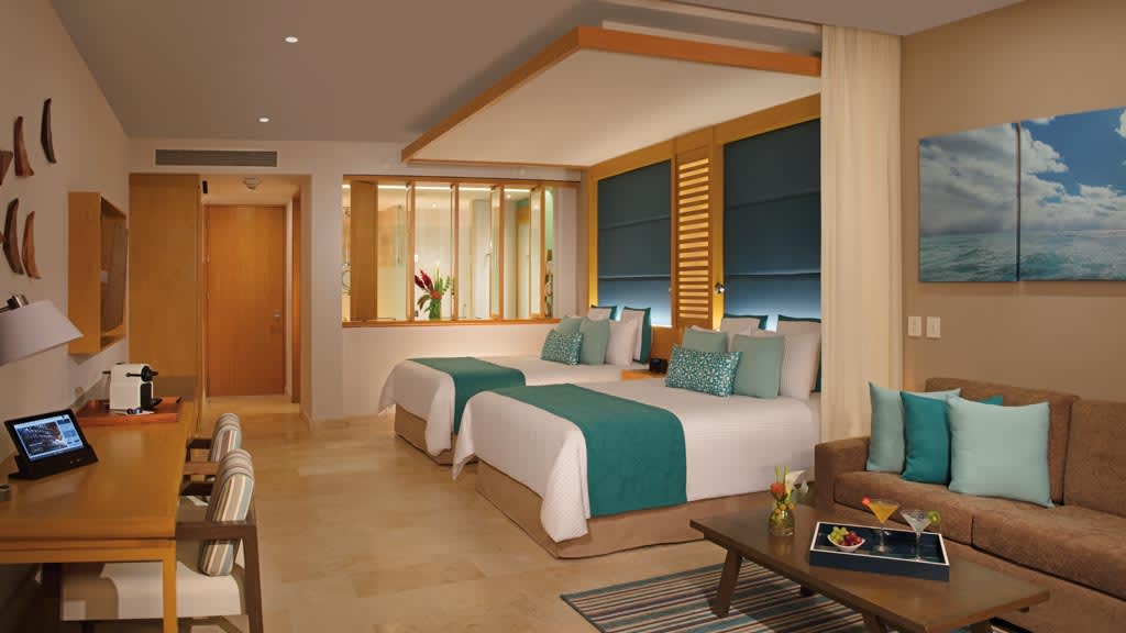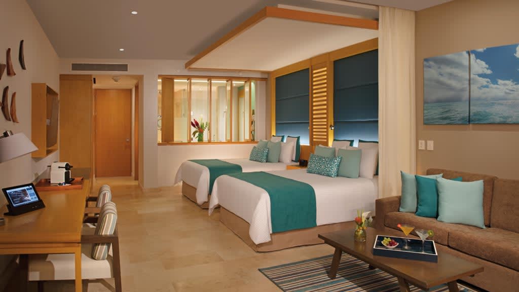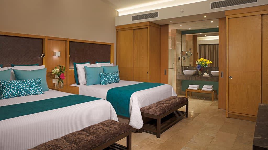 Dreams Playa Mujeres Golf and Spa Resort is ideally situated in an upscale resort community just a short drive from downtown Cancun. Stroll along the resort’s soft white-sand shores before diving into the sparkling Caribbean waters or challenging the waves during a water skiing ($) experience. Tee off with complimentary access to the nearby championship golf course designed by golf legend Greg Norman or unwind at the Mayan-inspired Dreams Spa featuring a hydrotherapy circuit ($). With activities for all ages, families can spend sunny days at the water park while little ones enjoy crafts at the Kids Club and teens practice stand-up paddle boarding or perfect their swing at the batting cage. Couples can savour gourmet Mediterranean fare at the resort’s Moroccan-inspired restaurant before partaking in wine or tequila tastings.