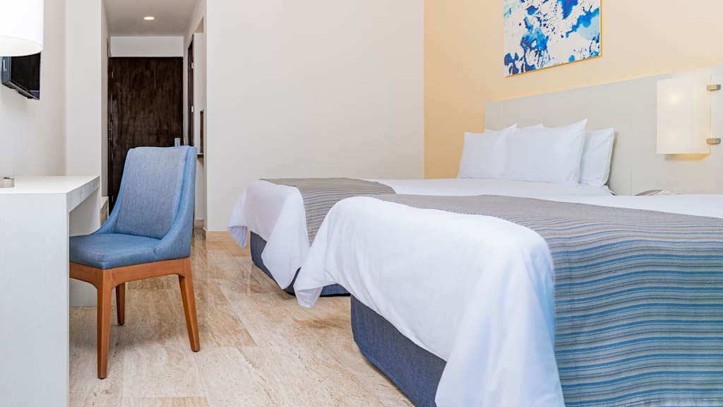 Set along the stunning shores of Mexico’s Pacific Coast, Krystal Puerto Vallarta is the ideal destination for family vacations with plenty of opportunities for fun in the sun. There are plenty of activities for the little ones at Kamp Krystal, which features an indoor playground and a kids pool with a water slide. While the youngest members of the family are busy, you can take in picture-perfect views of the coast as you kick back and relax by the elegant infinity pool or join in on exciting resort-offered activities like bingo and karaoke. Head to lively downtown Puerto Vallarta and explore the Malecón boardwalk. Back at the resort, grab a bite to eat at one of the resort restaurants serving up something for all tastes or sip on an evening cocktail at the lobby bar. Choose from a range of charming accommodations with convenient amenities, including rooms in the Deluxe Tower with modern décor.