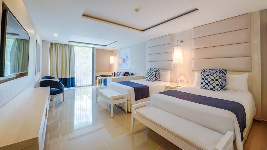 Surrounded by lush tropical landscapes and overlooking sparkling turquoise waters, Grand Sirenis Riviera Maya Resort promises memorable getaways in the tropics. Soak up the sun on the resort beach, which is home to an authentic Mayan ruin in a heart-shaped inlet – an ideal spot for snorkelling. Kick back and relax by one of the many pools, including a dedicated kids pool and a sprawling lazy river with poolside wait and towel service. Younger vacationers will have a blast at the action-packed Mini Club for kids while those seeking rest and relaxation can indulge in a pampering beachside massage or Mayan-inspired treatments at the sprawling on-site spa. When you’re craving a bite to eat, there’s no shortage of options to choose from, with cuisine ranging from Italian favourites to Thai specialties and authentic Mexican dishes. After a perfect day in paradise, head to the rooftop Ibiza Sky Bar for cocktails and live music before retiring to spacious accommodation options with all the modern conveniences of home.