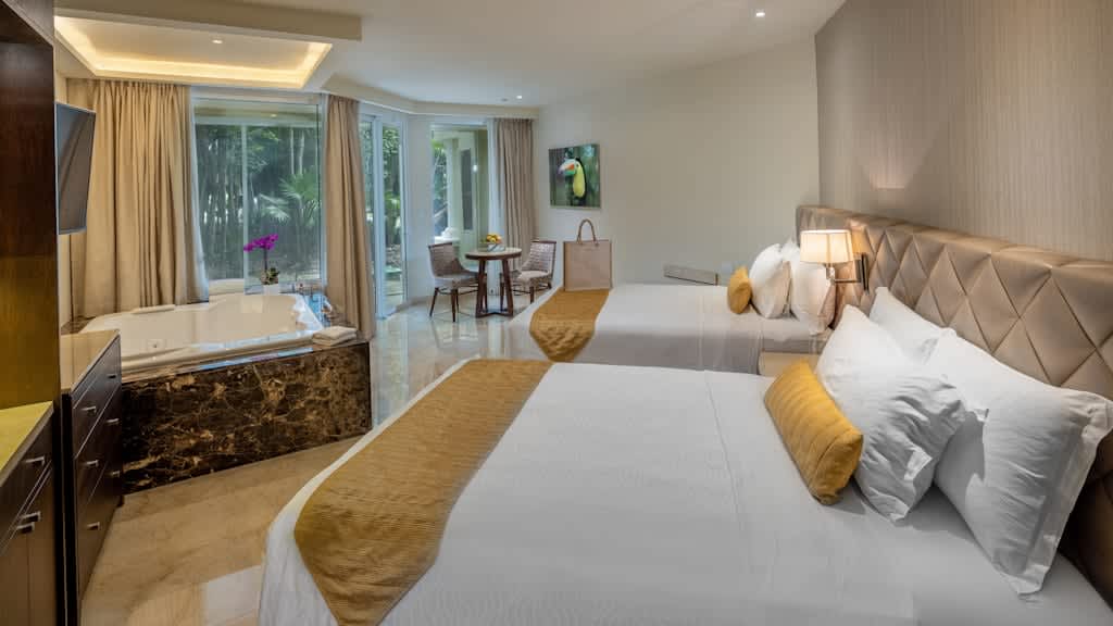 Nestled on the Yucatan Peninsula overlooking Riviera Maya’s beautiful coast, Moon Palace Cancun offers picturesque getaways in paradise for families, couples and groups of friends. There’s plenty of resort amenities to try from mini-golf and beach games to the FlowRider® surf simulator and arcade, plus on-site kids and teen clubs that offer a host of exciting activities including karaoke, arts and crafts and fashion shows. The property is stacked with delicious dining options like wood-fired slices at Poolside Pizza, Indian dishes at Agra, Asian specialties at Momo and a host of other restaurants so you’re never lacking in choice. Take in an entertaining live show at the resort theatre or dance the night away at the on-site nightclub before retiring to spacious and well-appointed accommodations with oceanview rooms and swim-up suites available. Travelling with family? Make the most of your stay by booking one of the Superior Family Suites, featuring stocked mini-bars with something for parents and kids, whirlpool tubs, XBOX ONE, furnished balconies and more.