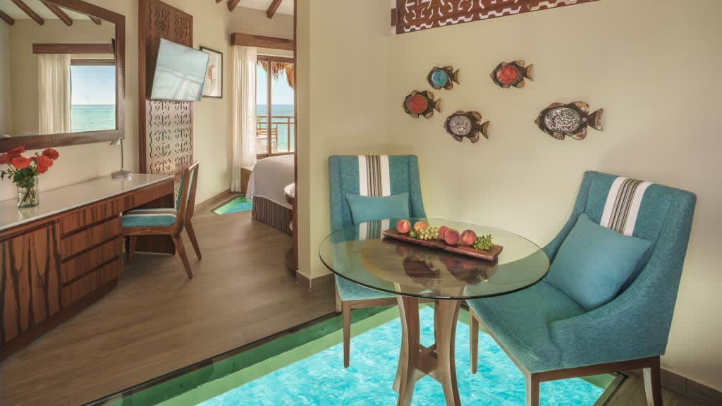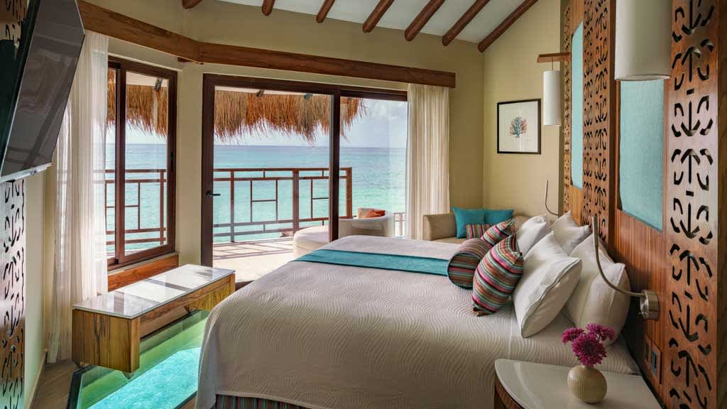 Wake up every day to stunning views of the coast when you stay at Palafitos Overwater Bungalows. Begin your getaway to paradise with a welcome hand and head massage paired with a glass of sparkling wine. During your stay, you’ll have complete access to the facilities and services at El Dorado Maroma, including the restaurants and pools. Soak up the sun on the stunning beach or by one of the sparkling pools with a cold drink in hand from the attentive pool and beachside butler service. Your butlers will also be on hand to take care of all your vacation needs including dinner reservations, tour bookings and in-suite services, and will ensure that your accommodations are to your exact specifications. Join in on resort-offered activities from non-motorized water sports to dance classes, yoga, pilates and Spanish lessons by wellness program: guest experience butler. After a day spent in paradise, retire to elegant bungalows surrounded by breathtaking ocean views complete with luxurious décor, glass bottom floors, a private infinity pool, an outdoor shower, an indoor Jacuzzi big enough for two, a ladder to dip directly into the Caribbean Sea and an oversized deck with lounge chairs perfect for watching the sunrise or sunset.