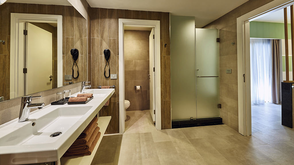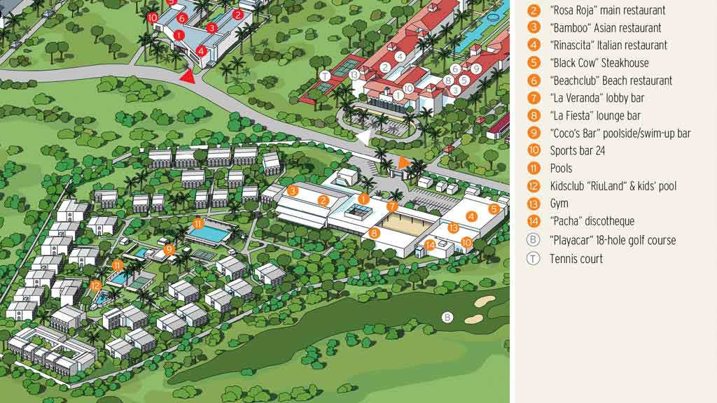 • Sprawling pool complex with comfortable loungers and a swim-up bar