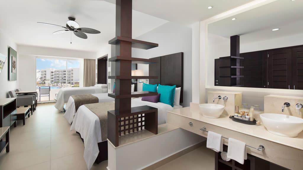 Set on a beautiful stretch of white-sand beach, Ventus at Marina El Cid Spa and Beach Resort offers picturesque tropical getaways for guests of all ages. Lounge by one of the sparkling pools, including an adults only pool and a heated infinity pool. Soak up the sun on the pristine beachfront or explore the surrounding coast with resort-offered water sports like kayaking. Unwind with a relaxing tai chi class or treat yourself to a massage at the on-site spa ($) while mini-vacationers and older kids enjoy exciting activities at the kids and teen clubs. After a fun-filled day, head to the Macondo Ocean Deck Bar and sip on a refreshing cocktail as you take in the breathtaking sunset. Plus, you’ll enjoy Stay at 1, Play at 3! privileges with Hotel Marina El Cid and Ventus Ha’ at Marina El Cid next door.