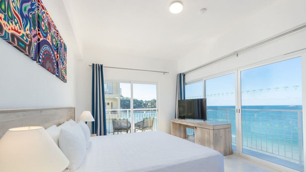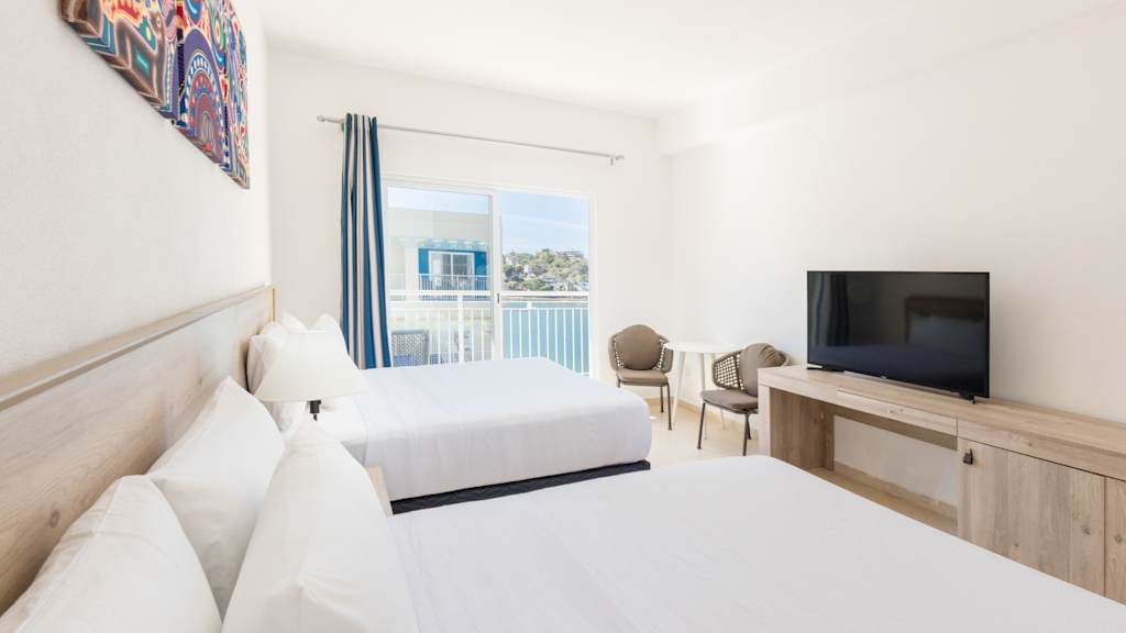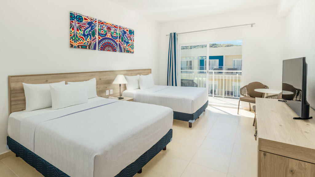 Nestled in the hidden gem of Guayabitos Bay, Decameron La Marina is the ideal destination for your next laidback vacation in Riviera Nayarit. The Pacific Mexican resort is located on a golden-sand beach offering sweeping views of Coral Island, with complete access to the amenities and services at Decameron Los Cocos and Decameron Isla Coral included in your stay. There’s plenty of fun to be found on-site with sparkling pools, one for adults and one for children, and a host of daily activities like kayaking and paddleboarding. If you’re visiting from mid-December to the end of March, you’ll even have the chance to spot whales swimming along the coast or embark on a whale-watching tour through the bay! Grab a bite to eat from the buffet and à la carte restaurant specializing in Mediterranean cuisine before listening to live music at the lobby bar or dancing the night away at the nightclub next door. After a full day of fun in the sun, retire to tropical-inspired accommodations with convenient amenities including a balcony or terrace.