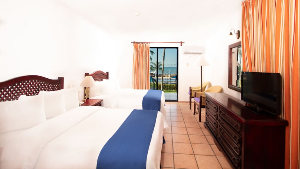 Situated along one of the most exquisite shores in beautiful Banderas Bay in Riviera Nayarit, Grand Decameron Complex Trademark is a sprawling all inclusive property promising to make every traveller’s vacation dreams come true. Consisting of three hotels with colourful architecture that share a host of amenities and services guests of all ages will love, there is no shortage of excitement at this Bucerías paradise. Start off your day basking on the beach under the sun’s rays and try some exciting non-motorized water sports or relax poolside at one of the five sparkling pools including one exclusively for adults. Join in on the resort’s daily activities, start up a game of beach volleyball or settle in for a spa treatment inspired by Mayan traditions at Temazcal Spa ($). When it’s time to grab a bite to eat, choose from a wide variety of cuisines and dining venues located throughout the property, including international buffets, Japanese, Mediterranean, Thai and more. When the sun goes down, sip on a nightcap at one of the stylish bars, enjoy a live show or dance the night away at the on-site Conga nightclub before retiring to charming accommodations featuring Mexican colonial style and all the comforts of home.
