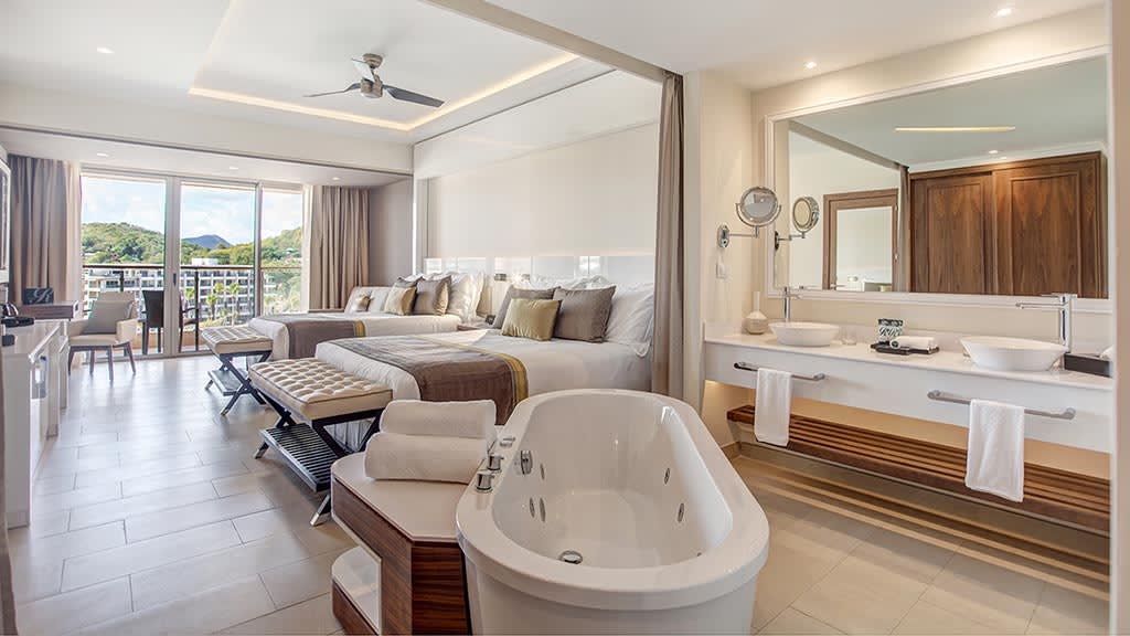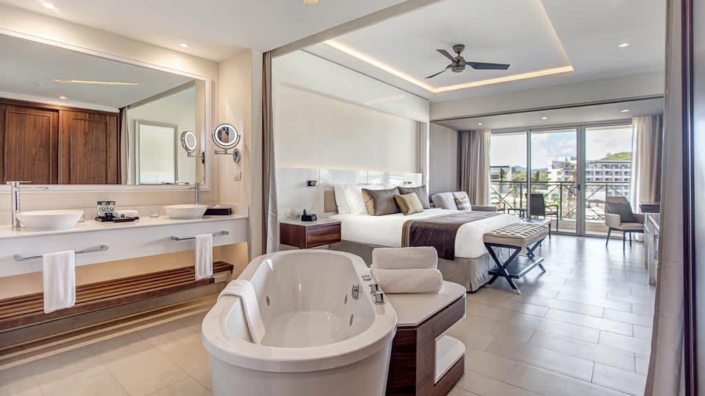 Located on the breathtaking shores of Saint Lucia with the majestic Pitons in the distance, Royalton Saint Lucia offers luxurious amenities and top-notch service in a tropical paradise. The resort offers plenty of activities that the whole family will love; little ones will have a blast at the supervised kids club featuring a variety of fun-filled games while parents treat themselves to a couples massage at the lavish Royal Spa. Mini-vacationers will also have the chance to meet Turbo the Turtle™, the newest member to join the Royalton team, who will tell stories of his adventures at sea and share tips on how we can protect our vulnerable ecosystems – and his home – by reducing our carbon footprint. Kick back and relax by one of the numerous pools or try out water sports by the white-sand beach like snorkelling and kayaking. After working up an appetite, choose from a wide range of delicious cuisines, whether you’re in the mood for classic Italian dishes or authentic Caribbean cuisine – followed by an after-dinner cappuccino and ice cream at the Café Lounge. At the end of the day, retire to spacious and luxurious accommodations with the modern conveniences of home including comfortable DreamBeds™, 24-hour room service and free resort-wide Wi-Fi. For elevated service, upgrade to Diamond Club™ room categories for preferred room locations, exclusive pool and beach areas, world-class butler service and more.