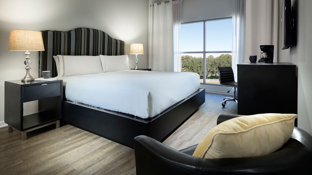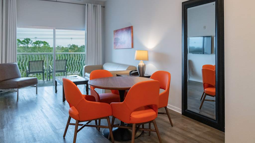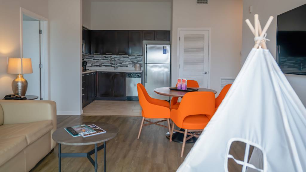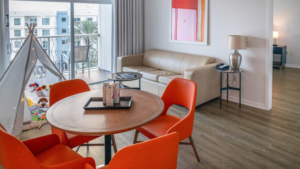 Meliá Orlando Celebration is the perfect home-away-from-home for families looking to stay close to the magic in Orlando! Guests are invited to stay in the fantasy community of Celebration, created by The Walt Disney Company where Walt Disney World® theme parks are just a short distance away. Plus, as an official Walt Disney World Good Neighbor® hotel, you’ll enjoy scheduled complimentary shuttle service to select theme parks. You can also easily explore some of Orlando’s other major attractions nearby like Universal Orlando™ and Disney Springs®. After a magical day at the parks, cool off with a dip in the hotel’s zero entry, 360-degree vanishing edge pool or enjoy a round of mini-golf or pool volleyball – there’s plenty of fun for the whole family including furry friends with an on-site dog park. Grab a bite to eat at The Wilson, a seaside-inspired bistro serving up coastal cuisine with international influences and tasty cocktails, or explore outside the hotel and discover all the charms of Celebration, from wine-tasting venues to the ESPN Wide World of Sports Complex when you want to watch the big game. End your day in your stylish room or suite, offering all the comforts of home and spacious enough to fit the whole family.