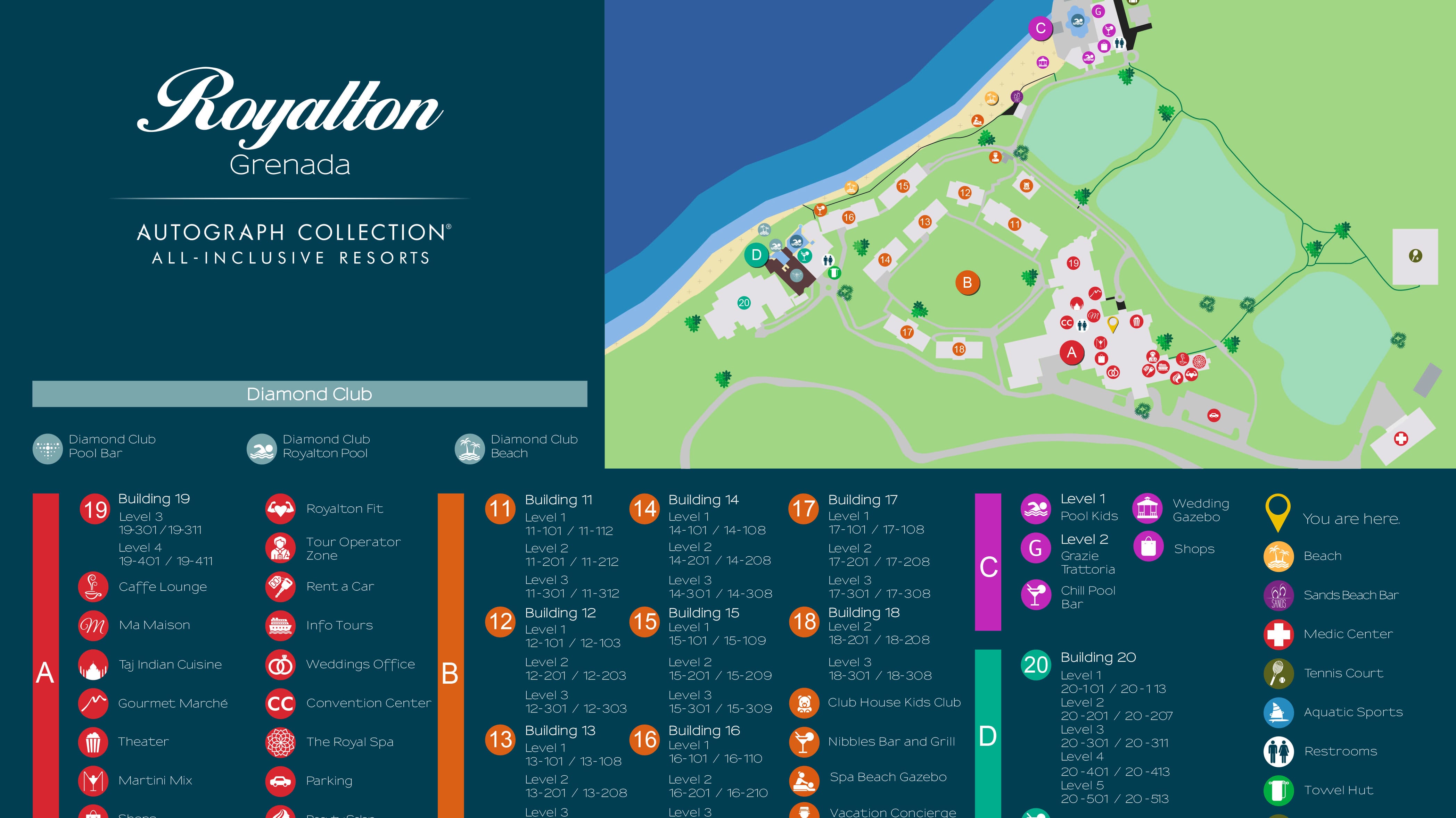 Situé sur la côte à couper le souffle de Tamarind Bay, le luxueux Royalton Grenada An Autograph Collection All Inclusive Resort propose des escapades de classe mondiale dans un coin exotique. Passez la journée à vous prélasser sur une des deux plages de sable blanc de l’hôtel, faites-vous bronzer au bord de la piscine scintillante surplombant la mer, ou bien essayez un éventail de sports nautiques non motorisés comme la plongée avec tuba, le kayak et la voile. Les enfants s’éclateront grâce aux activités amusantes au miniclub et apprendront de nouvelles choses avec Turbo the Turtle™, le tout nouveau membre de l’équipe Royalton. Ce dernier racontera des récits palpitants de son séjour en mer et partagera sa passion pour la protection de l’environnement en donnant des conseils simples sur la façon de réduire notre empreinte carbone. Savourez de la cuisine gastronomique des quatre coins du monde grâce à des repas sans réservation illimités, notamment de la fine cuisine française à Ma Maison et des mets indiens authentiques au Taj. À la fin d’une journée amusante au soleil, rentrez dans vos chambres et suites luxueuses offrant toutes les commodités modernes de la maison, comme un service aux chambres en tout temps et le concept All-In Connectivity™ de Royalton. Pour encore plus de luxe, surclassez-vous à une chambre de la catégorie Diamond Club™ et bénéficiez notamment d’un excellent service de majordome, d’emplacements préférentiels des chambres ainsi que de sections exclusives à la plage avec service de boissons.
